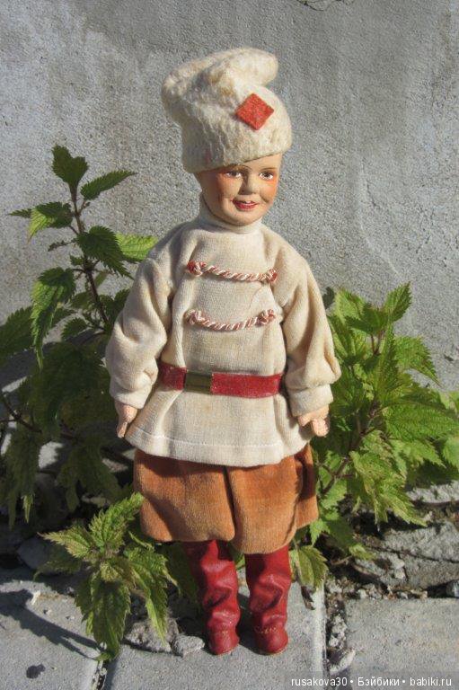 Рост 30 см. Клейма нет, пищика тоже нет. Обхват талии: 15 см. Размер стопы: 5.0х3,0 см. Размер стопы у сапожек 6.5х3.2 см