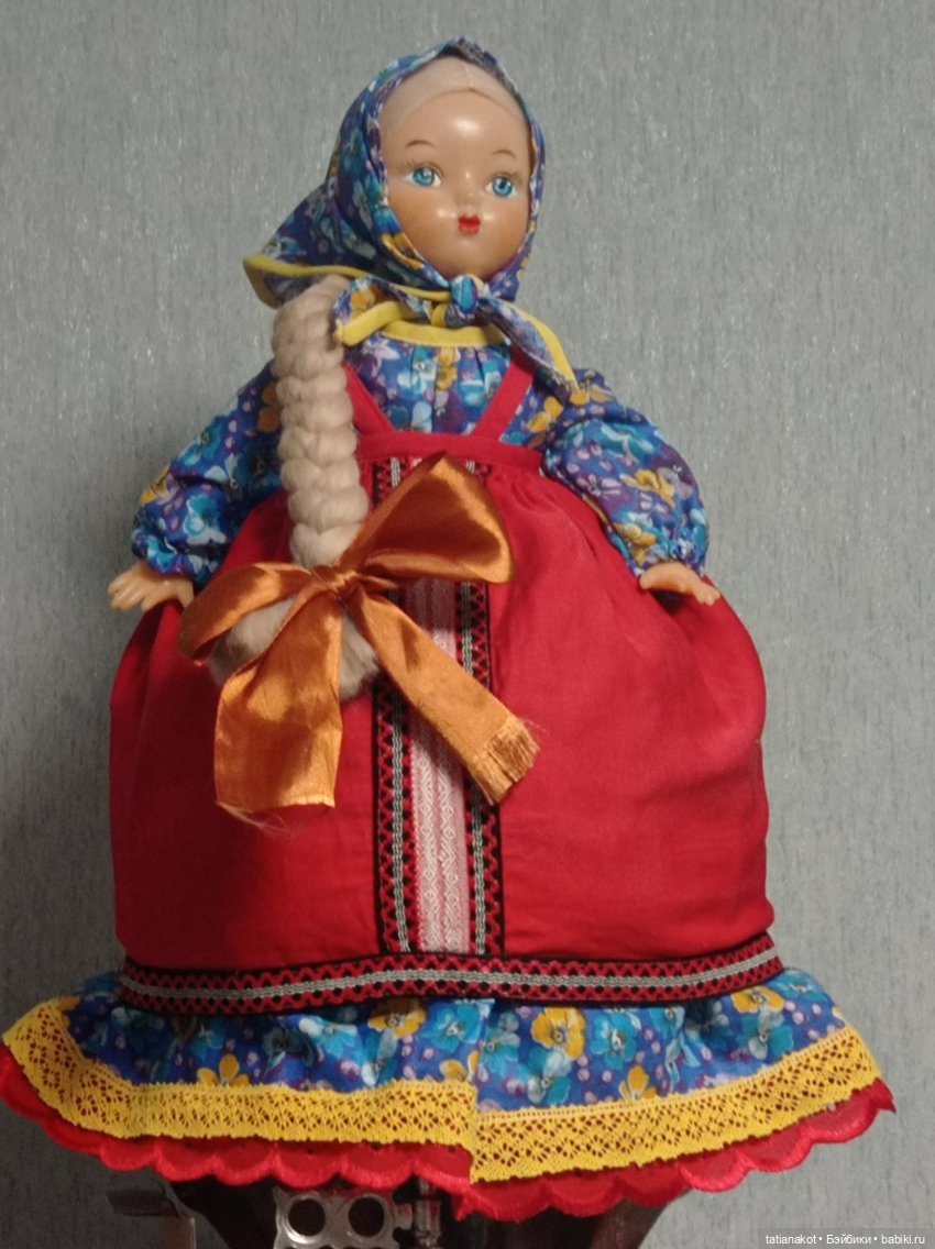 Марина, вам сказочно повезло! Кукла прекрасная, главное и парик и роспись сохранились, что редко бывает. У меня две Аришки, обе достались очень потрепанными. В голубом куколка поздняя, по росписи глаз видно и прошитым волосам. Прошивала сама, т.к. была она лысой. Вторая грелка на чайник сохранила сарафан и часть росписи, которую тоже пришлось восстанавливать. Куклы очень милые, я вас поздравляю! Пришли в гости