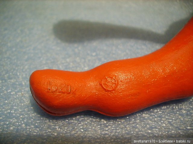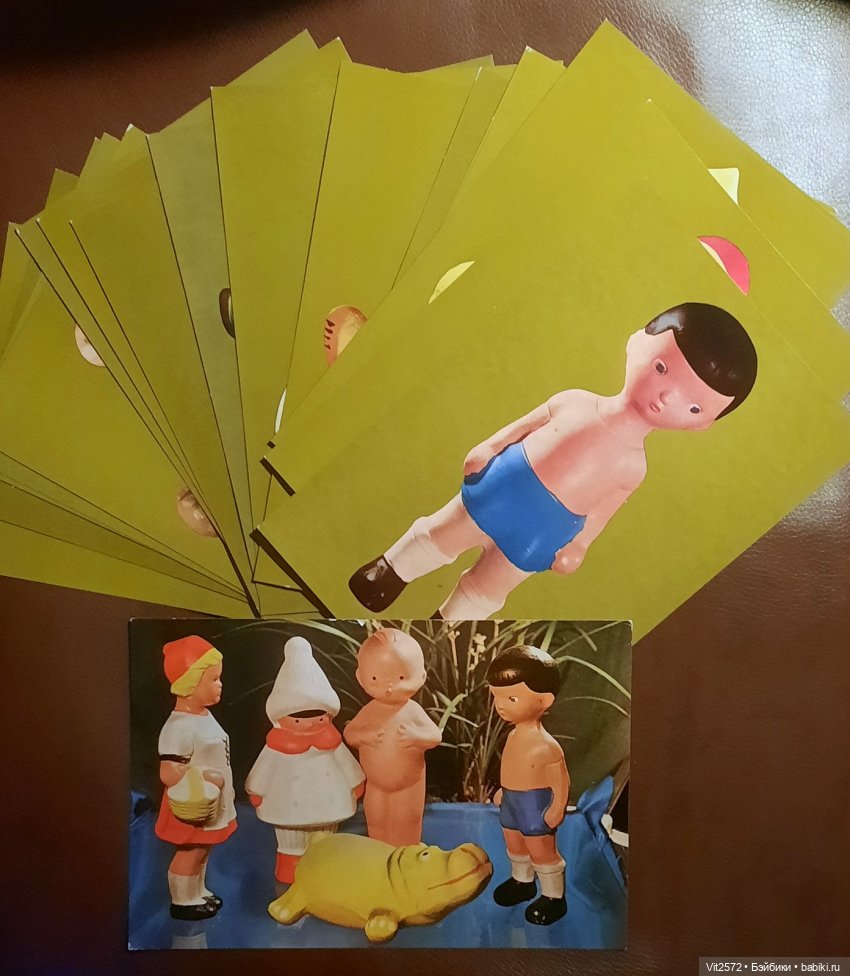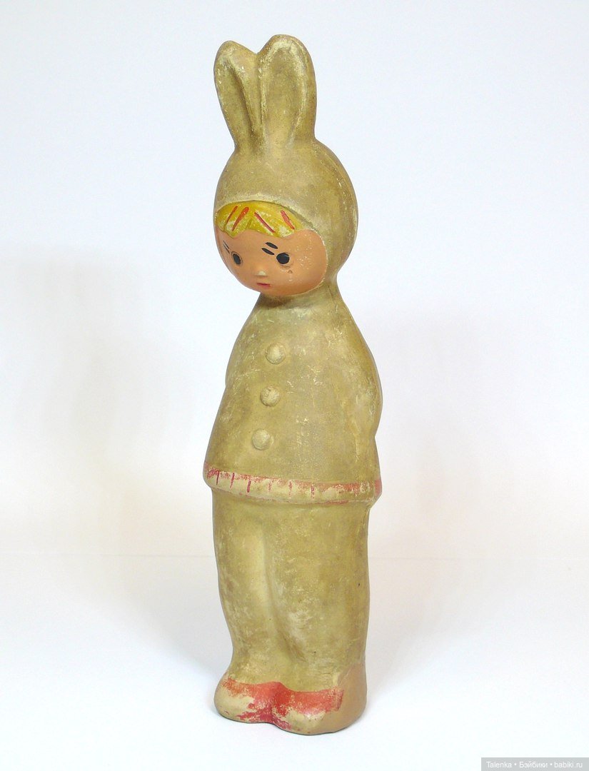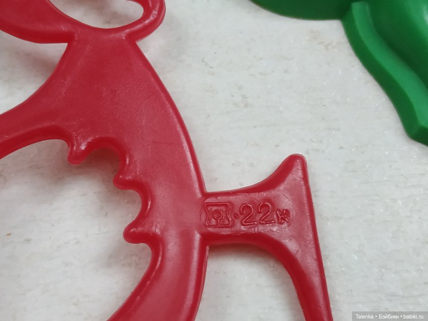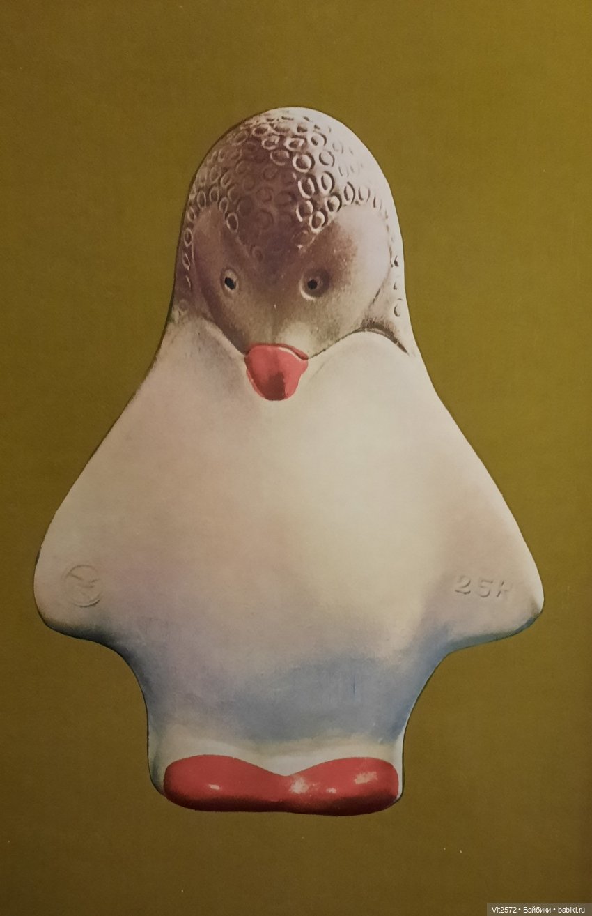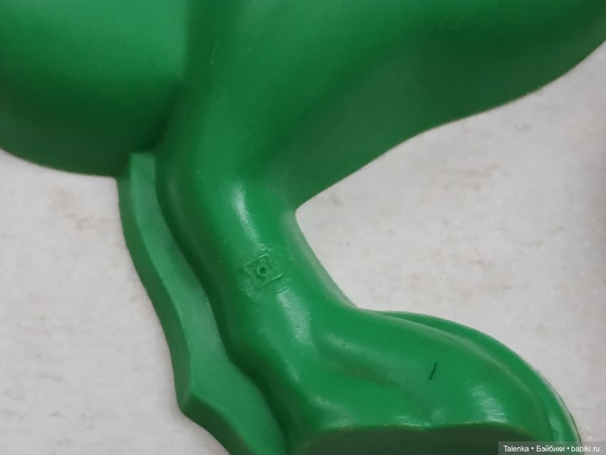 У меня есть каталог из открыток, который помогли определить как Чебоксарский завод резиновых изделий. На конверте с права в верху стоит клеймо. Но… на этих двух игрушках оно другое!