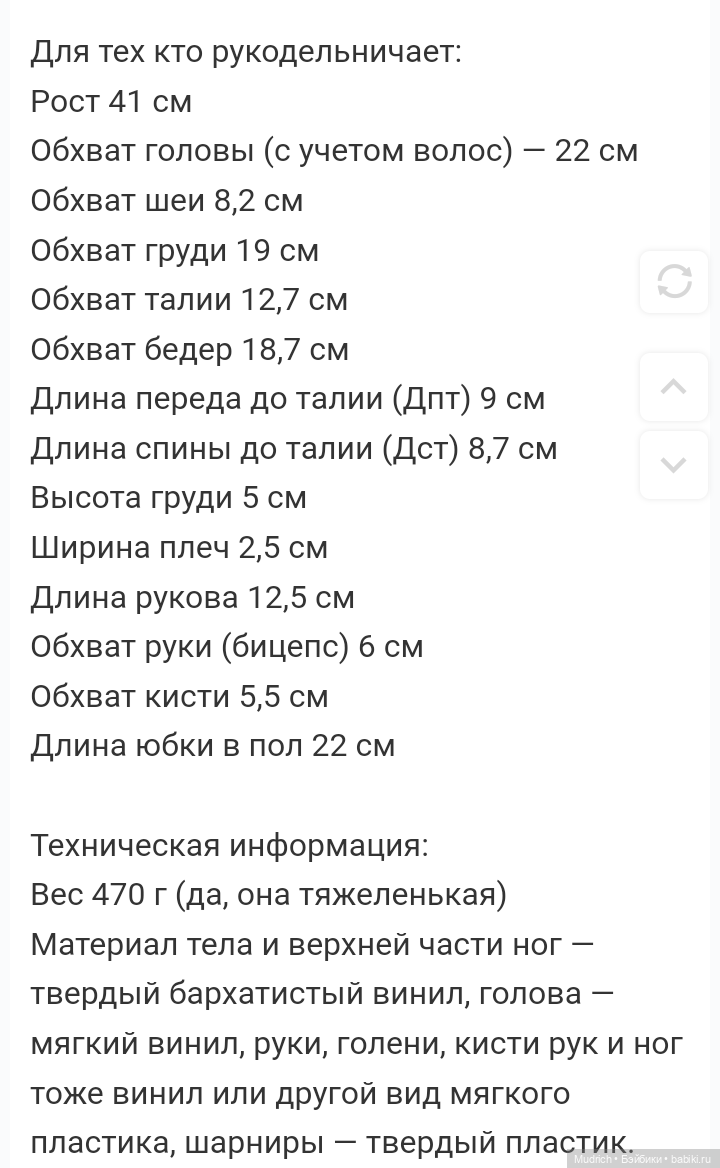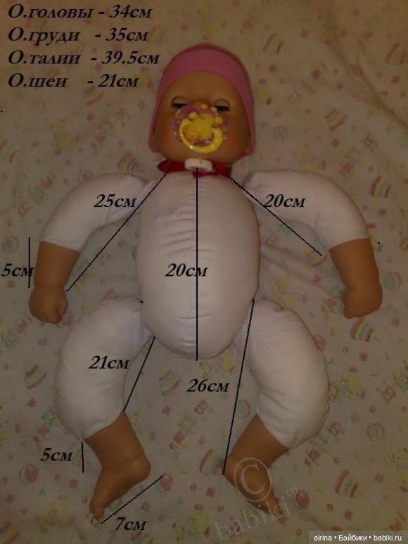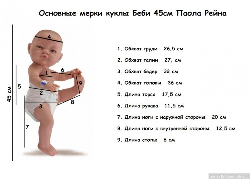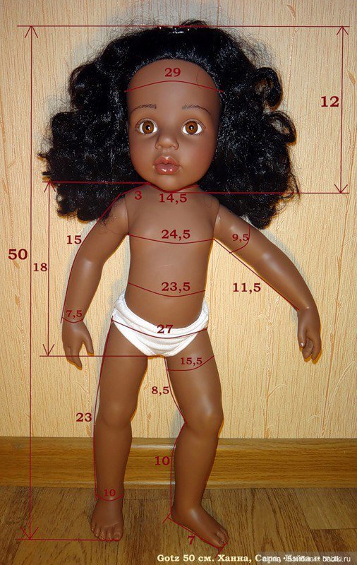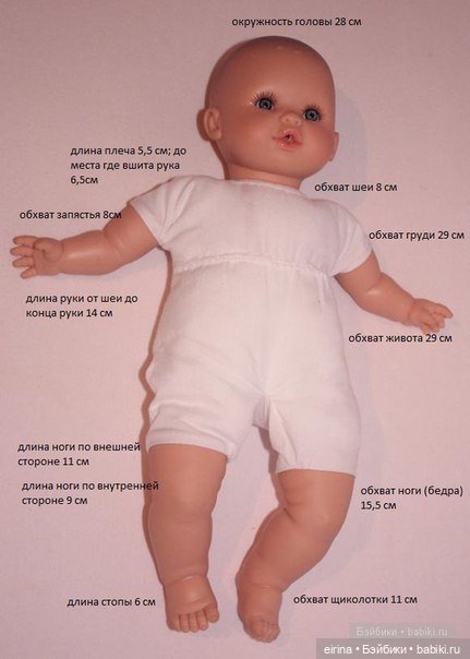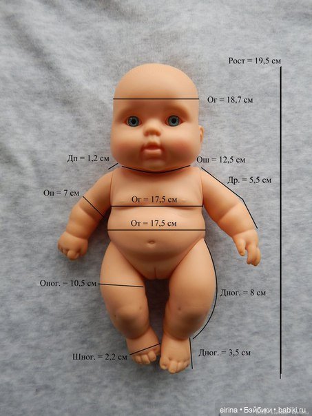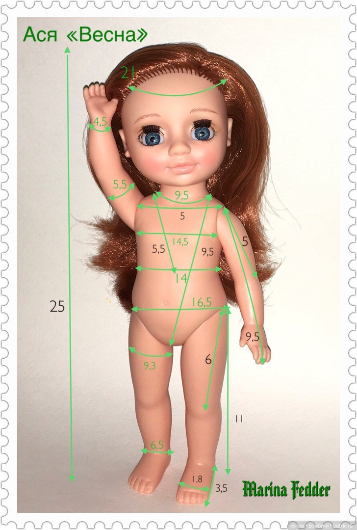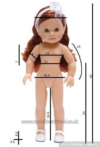 Виниловая куколка ростом 33 см. Смотрите таблицу ее размеров: