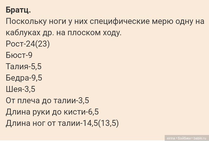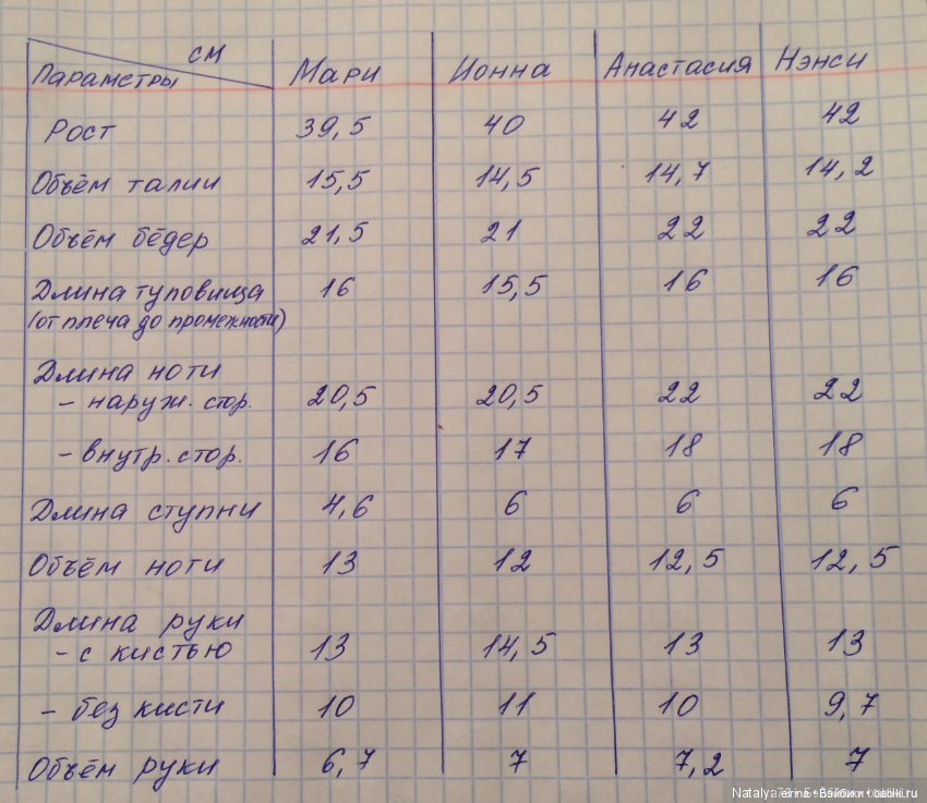 Мерки кукол 2