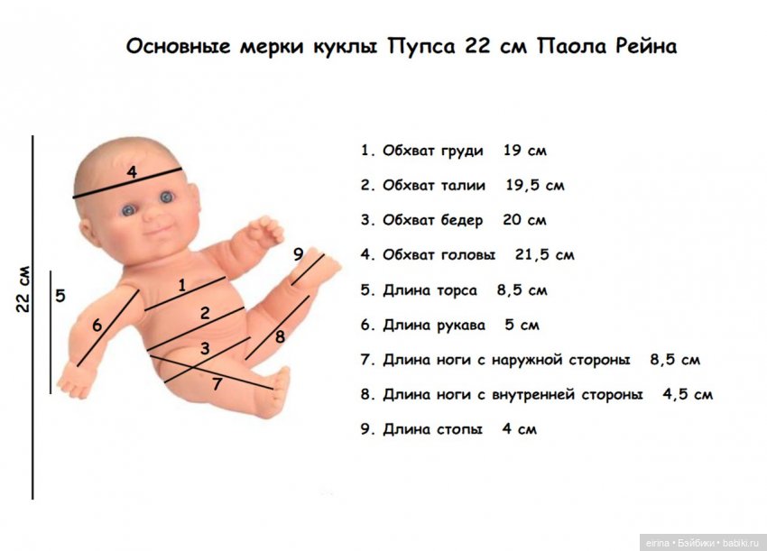 Основные мерки кукол приведены в таблице