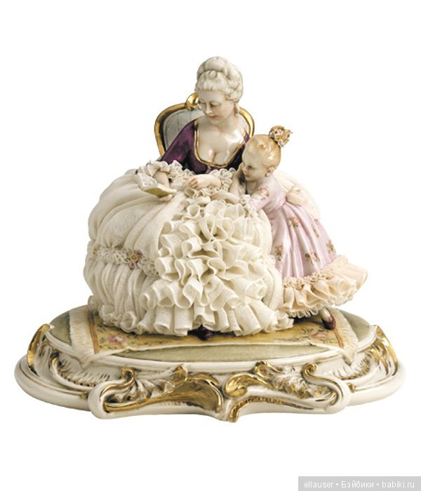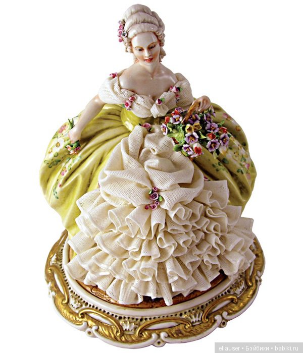 Любоваться ими можно бесконечно. Каждый, кто впервые видит подобные статуэтки, думает, что эти пышные кружева, к которым так хочется прикоснуться, просто надеты сверху на статуэтки. Но на самом деле это не так — они тоже фарфоровые и очень хрупкие, так что дотрагиваться до них нежелательно. Но поверить в это довольно сложно. Так где и как делают такую красоту?
