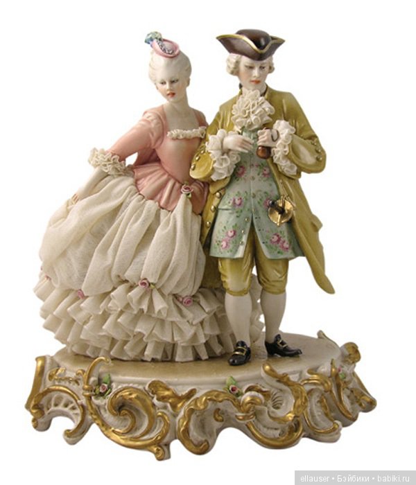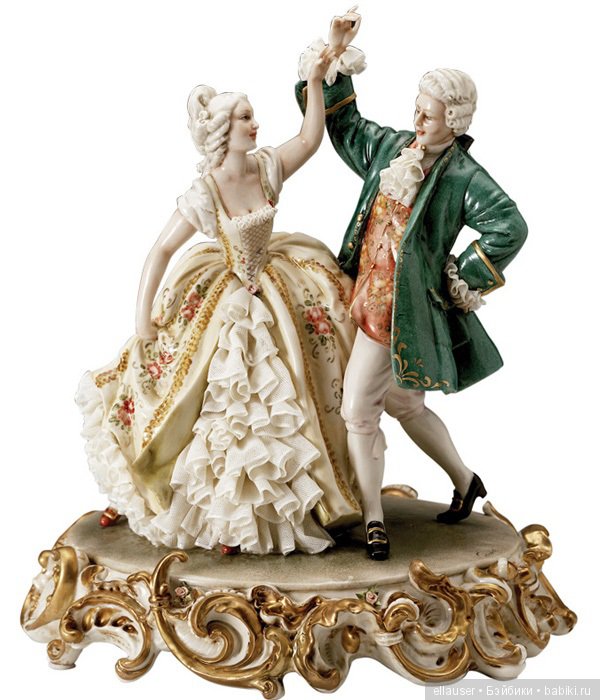 В конце этого же столетия приступили к массовому изготовлению статуэток. В основном это были фигурки балерин, танцовщиц, прекрасных дам в пышных нарядах из тончайшего кружева, галантных кавалеров.