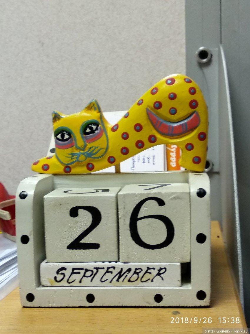 «Посмотрите как она может!» — воскликнула девушка-продавец и стала показывать эту кошечку, сидящую у неё на разных полочках. Здесь она сидит спиной, а здесь в полуоборот! А сейчас она смотрит на вас! Она при любом ракурсе всегда с вами. Видите, она как компаньон.