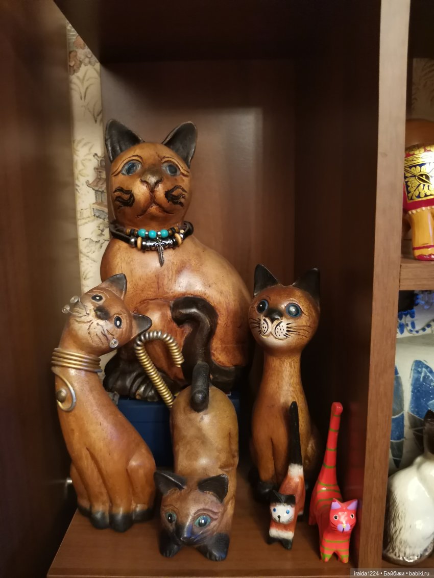 Сейчас коллекция разрослась, на полочках не умещается. Несколько экземпляров стоят в книжном шкафу. А ведь это не предел. Недавно позвонил мой бывший ученик и сообщил, что отправил мне новую кошку, едет аж из Нальчика. Необходимо срочно покупать новые полочки))))