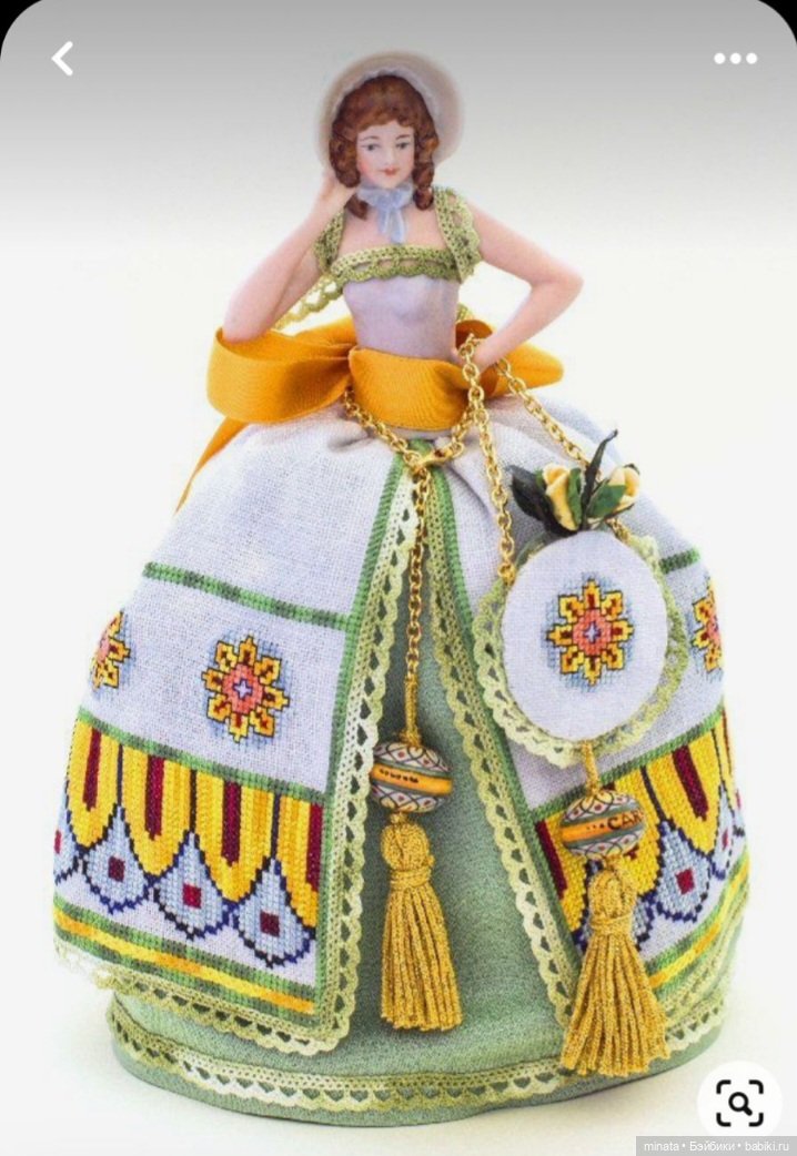 Как-то рассматривал куколок пудрениц и там были многослойные наряды ручной работы из лент, мне очень понравились.
