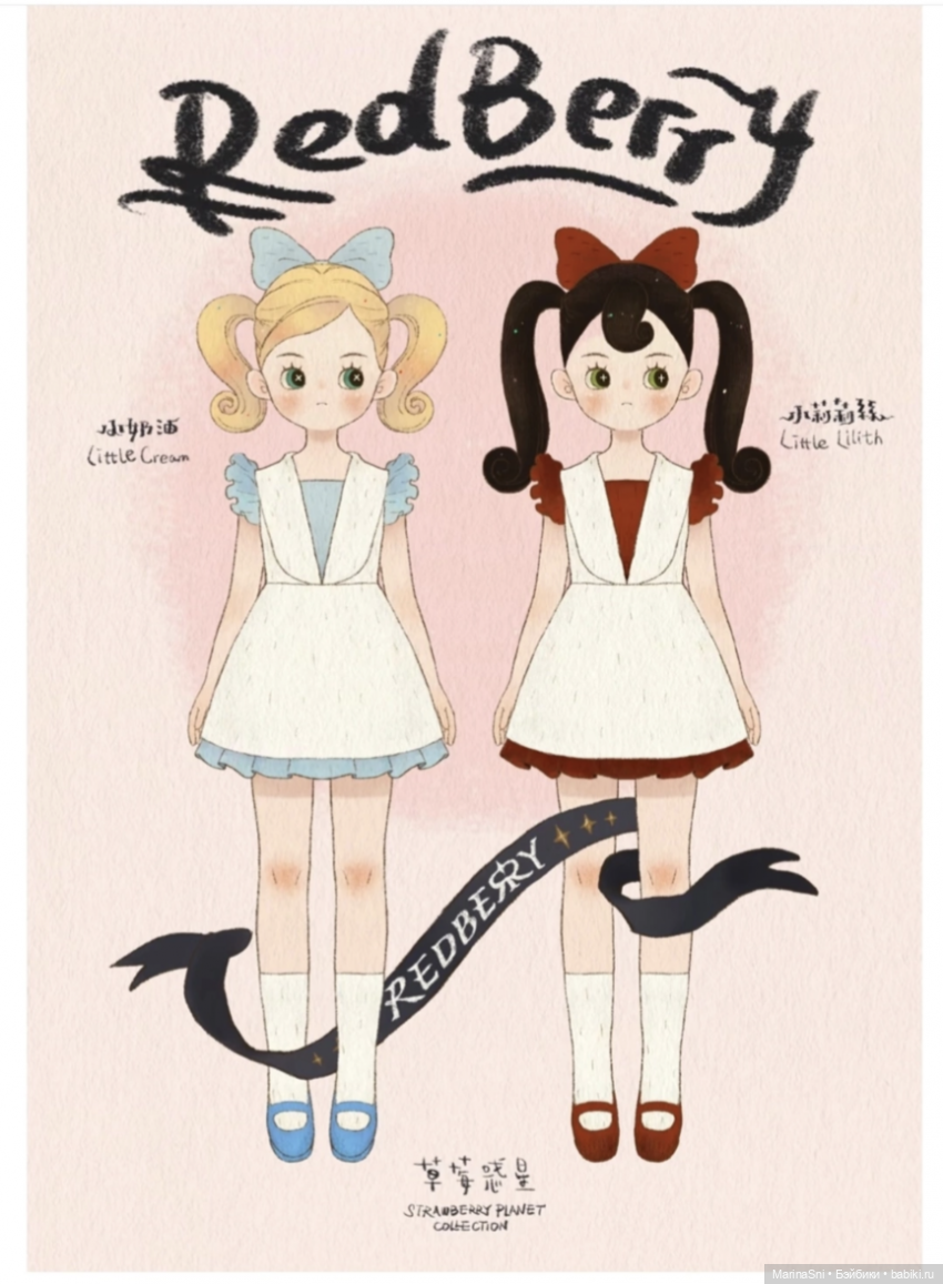 Осенью Strawberry Planet презентовал новый выпуск кукол Redberry. Две куколки — блондинка и брюнетка — с хвостиками на головах и с крестиками в глазах. Я про себя называла их сложением и умножением, мне они сразу очень понравились именно благодаря этой рисовке!