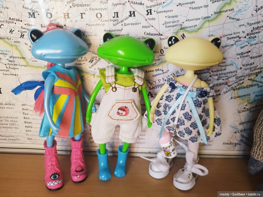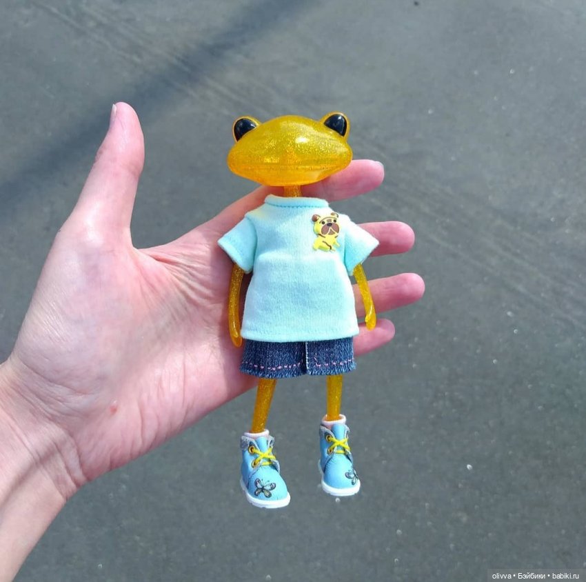 Что сказать… Лягушечек этих я очень оценила, очень удобного размера, на фото получаются чудесно, прекрасные компаньоны кукол и меня на прогулках… Одеваю лягух во что попало, все что подошло от кукол)) Не запариваюсь этим… Рада, что они у меня есть. Очень люблю. Молчу уж о том, что в свете последних событий приобрести их можно с трудом и вторичка.