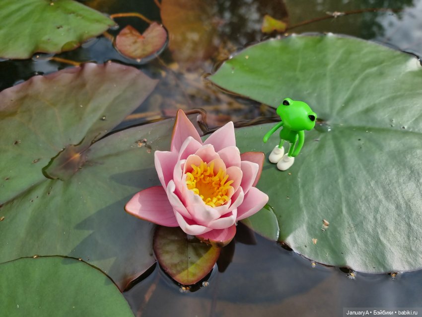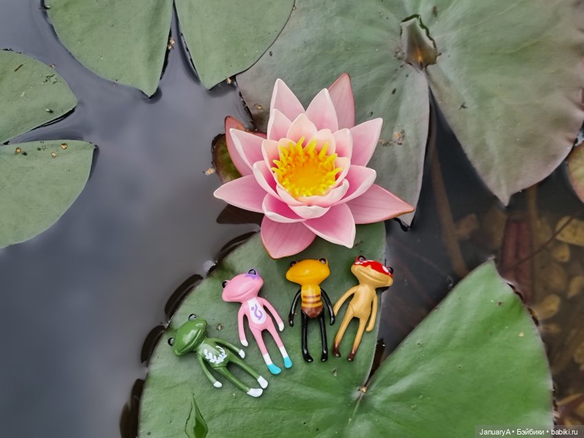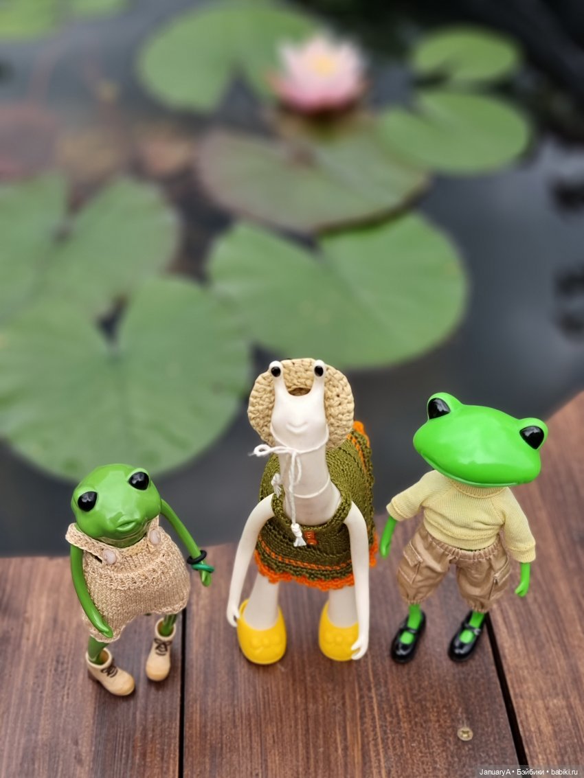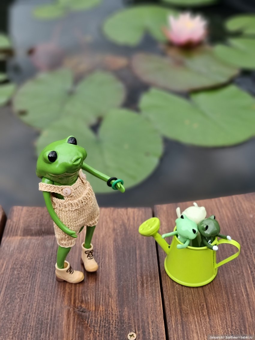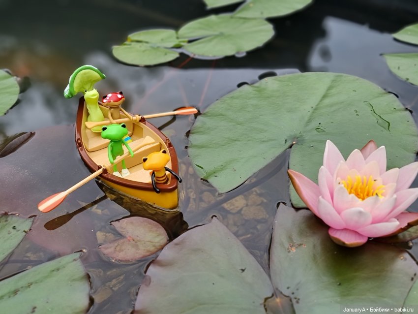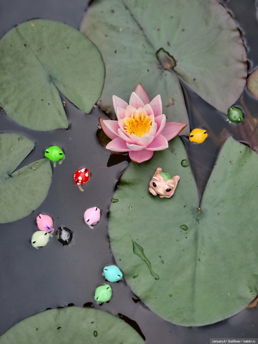 Мои лягушки, их родственники и знакомые от studio-uoo провели замечательный день у воды, любуясь распустившейся нимфеей. 💮