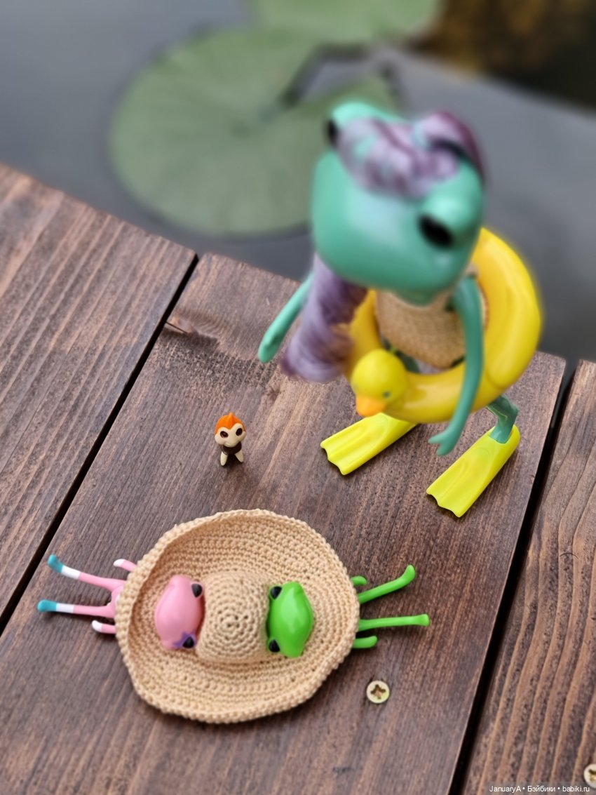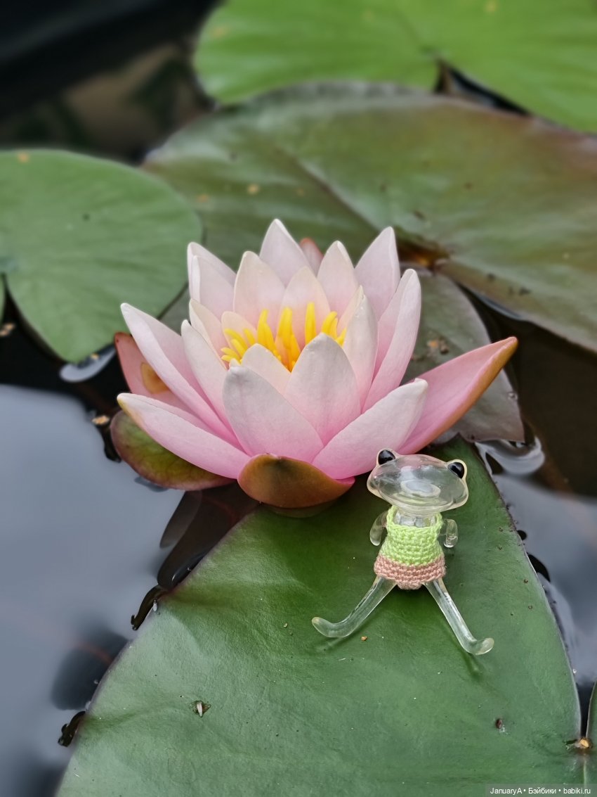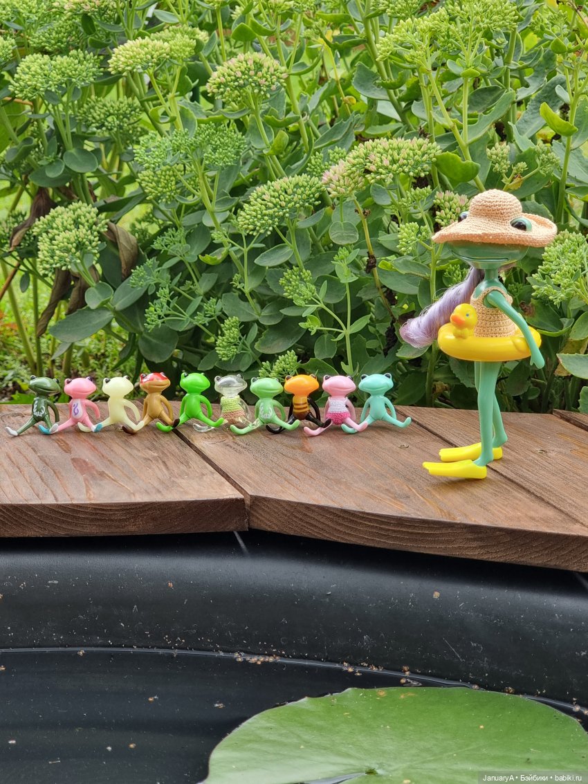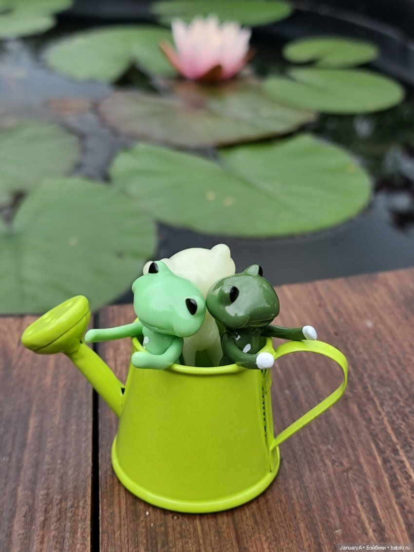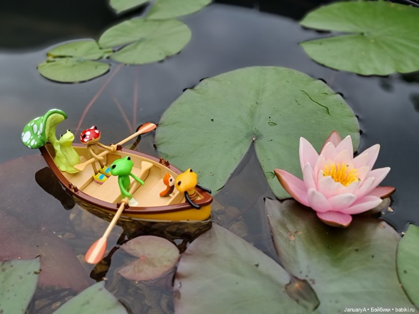 Мои лягушки, их родственники и знакомые от studio-uoo провели замечательный день у воды, любуясь распустившейся нимфеей. 💮