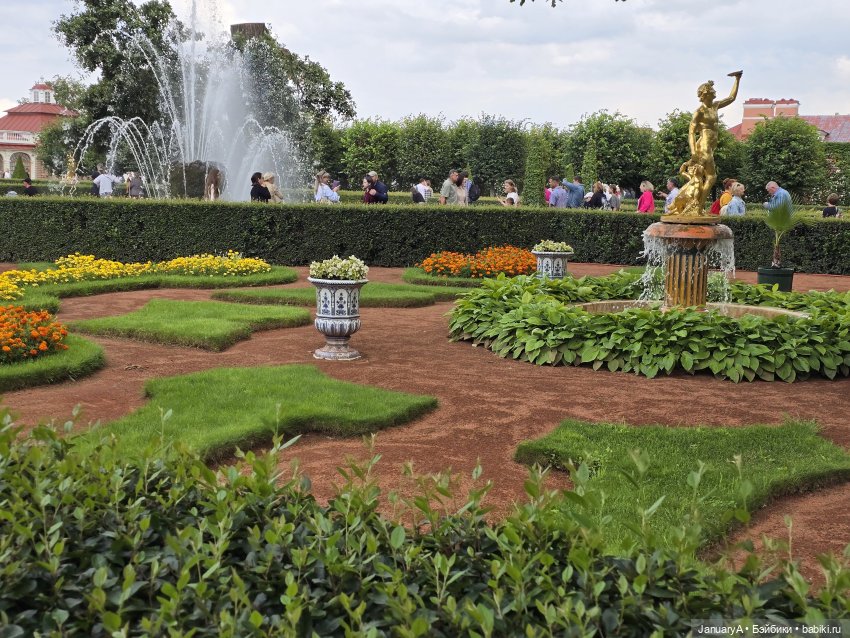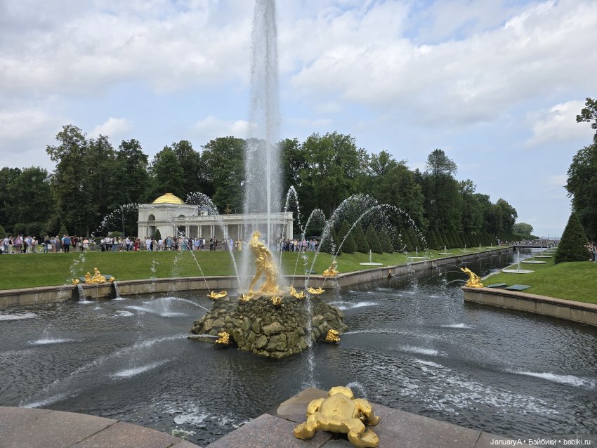 Первым делом, пока погода благоприятствовала, отправились в Петергоф. Полюбовались фонтанами.