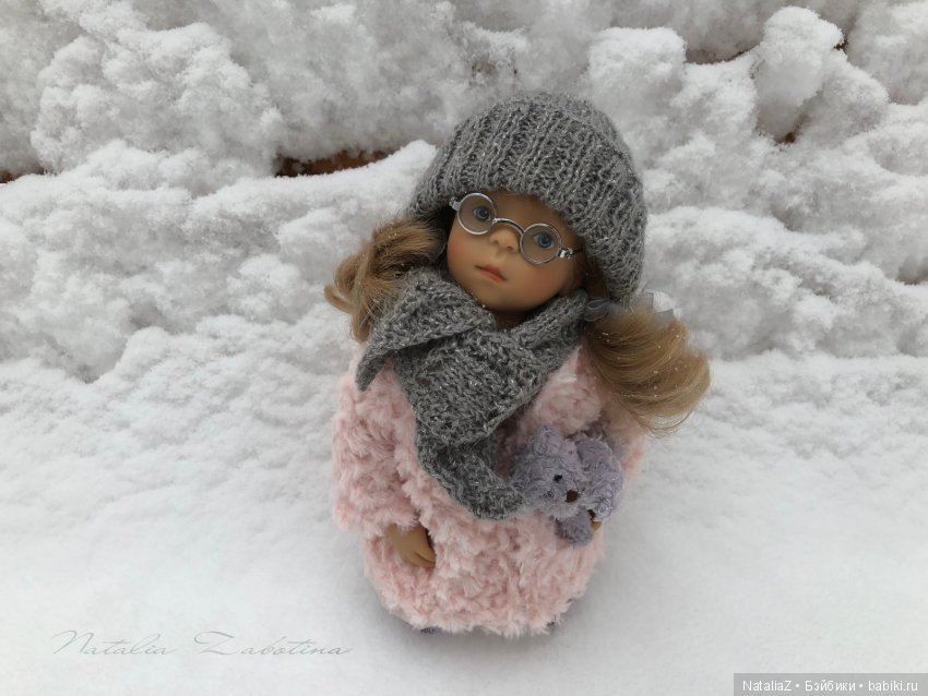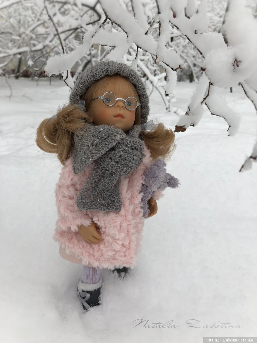 … Похоже, зимнее настроение и очарованность красотой вокруг сделали свое дело — к завершению прогулки маленькая кукло-девочка действительно стала похожа на самого настоящего Снеговичка :)