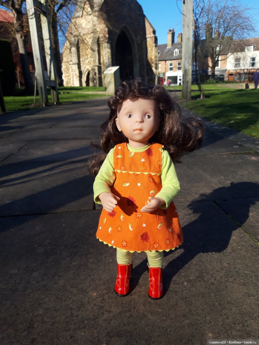 положил дополнительное платье от фирмы Kathe Kruse. Чье платье и шарфик я не знаю.