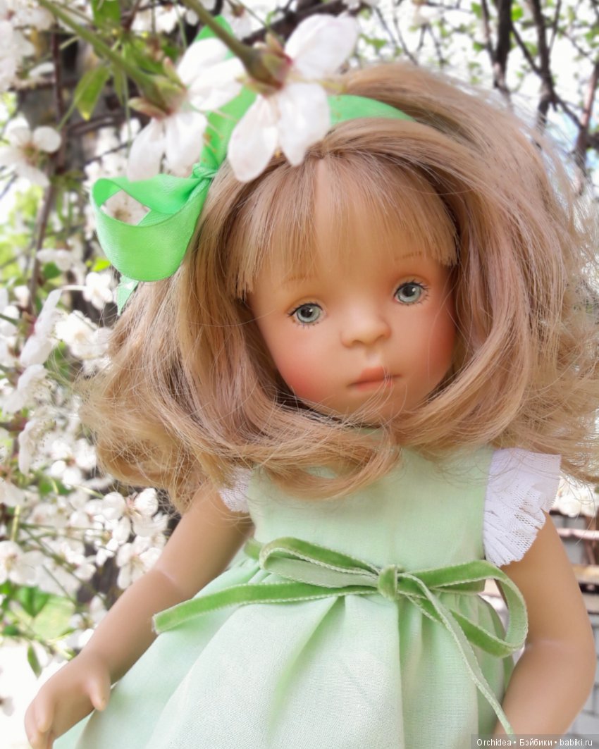 И вот, с летним теплом, ландышами и бабочками после дождя приходят чудеса! Очень хотелось купить у Сильвии куколку Minouche со светлыми волосами. Написала письмо любимому автору с вопросом, что можно ли создать куколку с зелёными глазами и светлыми волосами?! И просто чудо, что Сильвия согласилась сделать куколку с моими пожеланиями. А ещё я попросила Сильвию, чтобы она придумала для куколки имя и автор придумала для малышки прекрасное имя «Соня».
