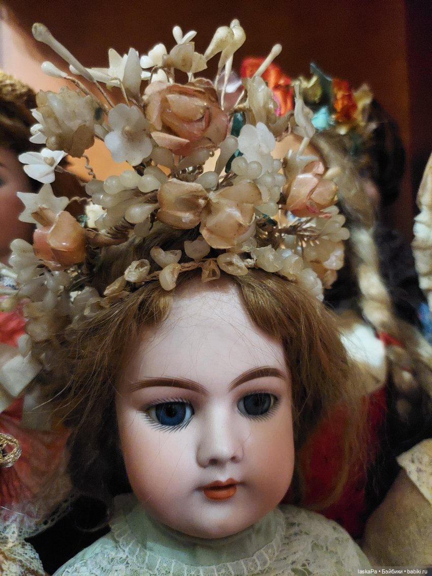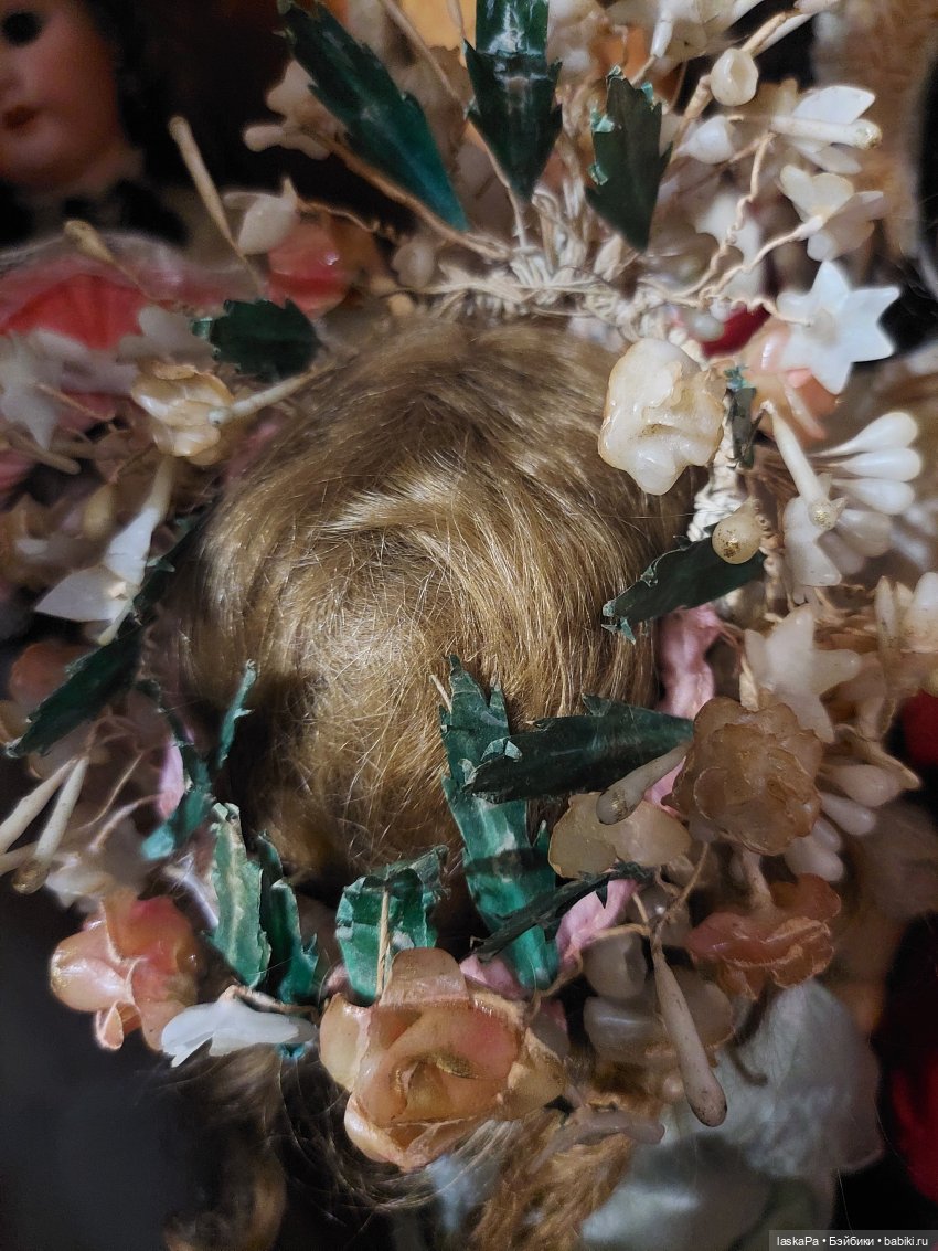 Молд — один, размер головы — один. Но какие разные! Первой ко мне попала девочка пониже. Меня поразило ее личико, что-то необъяснимое! Приехала она в мятном шелковом платье, интересном, но явно ей его дали поносить. В общем, теперь в этом платье у меня другая девочка, в старинном свадебной венке.