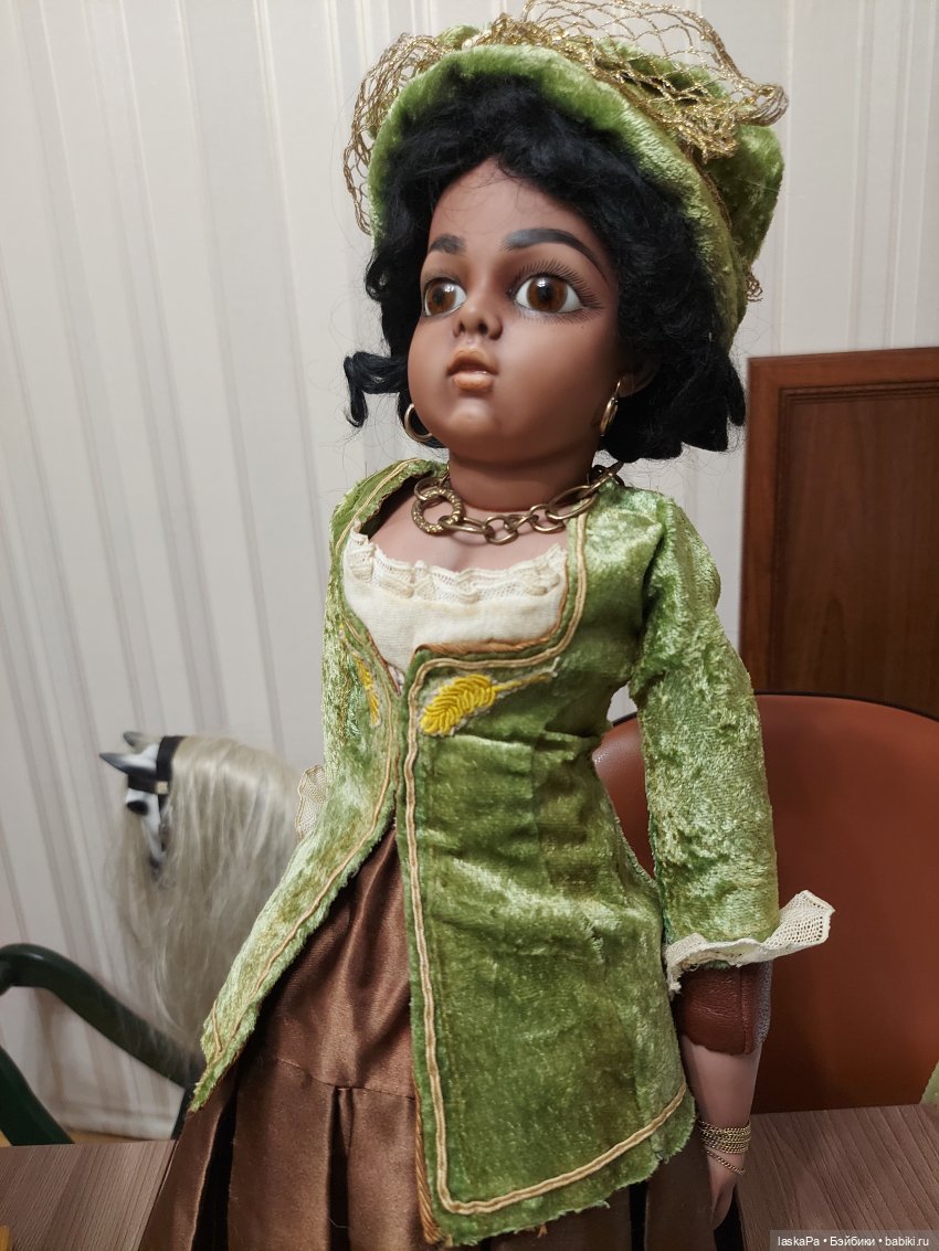Хотя… Есть и исключения. Мне нравится кукла, которая у меня на аватарке. Но она скорее даже «по мотивам», чем реплика конкретного молда. Так же мне нравится Батина, которая сейчас у меня в шопике. Она и размера очень приятного, и костюм отличный, но с антикварными куклами в витрине совсем не смотрится.