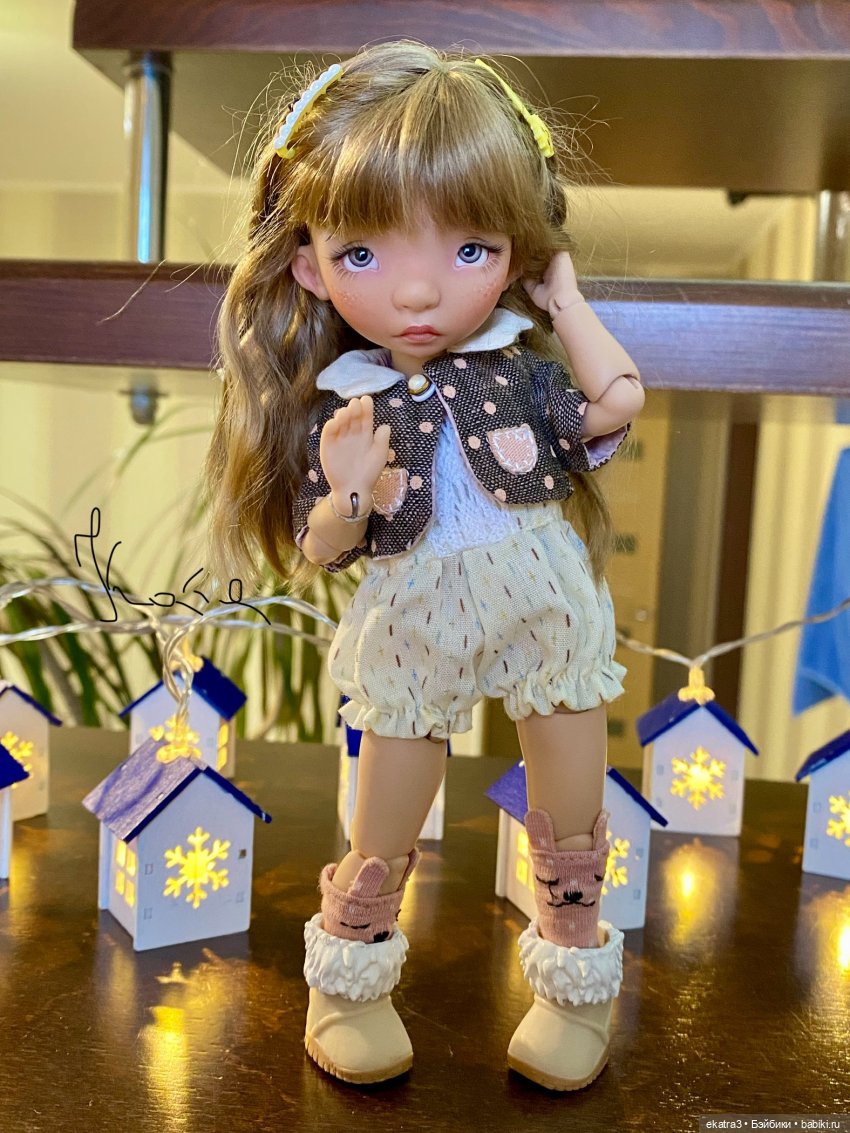 Доброго времени суток!На самом деле, я очень давно не покупала кукол. Поставленная цель на 2023 год была чуток уменьшите коллекцию, оставить тех, с кем больше всего контактирую и держать себя в руках, что бы не покупать новеньких. Я очень старалась, конечно покупала новеньких, но подержав в руках, понимала, что ближе всех мне Люсенька от Татьяны Филенко и отпускала в новые дома. Но срыв все же случился и вот моя новенькая дома. Это авторская куколка Сонечка от Валентины Игнатьевой. Скажу честно, я не фанат этого автора и практически не знаю ее кукол, но вот увидела девочку в шопике и захотелось купить. Я переспала с этой мыслью и проснувшись утром поняла, что меня не отпустило. Сегодня девочка приехала. Вижу я ее немного другой, но пока не хочу ничего менять, поэтому поэкспериментировали с паричками. Очень приятный размер 20 см, одежда подходит от Монст, парички от лати и пукифи, эстетически красивые коленочки, шарниры проклеины замшей, возможно кому то она кажется грустной, но скорее всего ребенок — меланхолик. И так моя Сонечка.