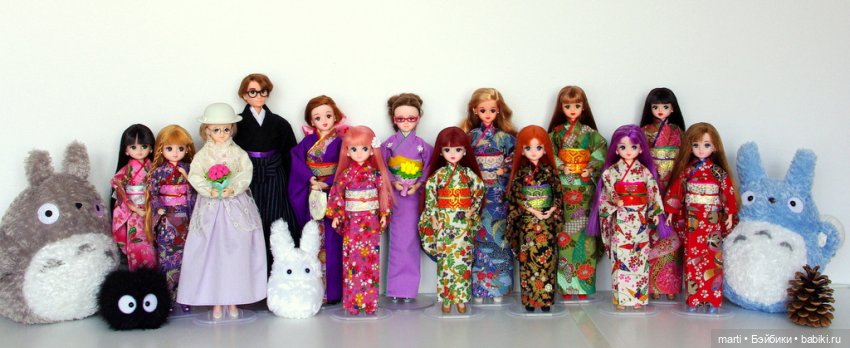 Куколками Такара я увлеклась в 2014 году и мне очень понравились кимоно-серии. В моей коллекции сейчас 20 девушек и 1 парень. Кимоно, в которых они одеты, были выпущены между 1993 и 2007 годами.