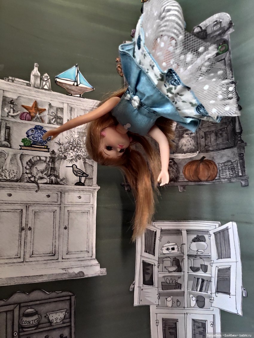 А двери и шкафы, это я на принтере распечатывала, увы рисую я далеко не на таком уровне… Чуть цвета только добавила, чтобы интереснее смотрелось)
