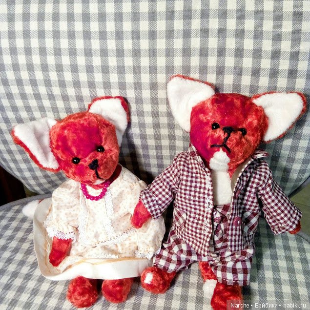 А я решила привести в гости своих лисок. Мне их сшила моя подруга- теддист, наверное, поэтому они слегка напоминают медведиков.))) Лиски маленькие, примерно 25 см и шарнирные. А имен у них пока нет.