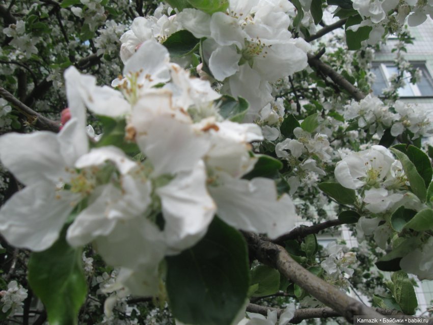 Городские яблоньки цветут.