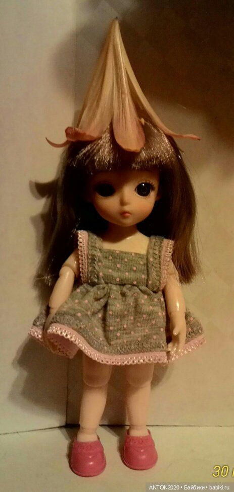 У меня сегодня цветок кливии кот хвостом сбил, вот куколке примерили) Тоже весело было)