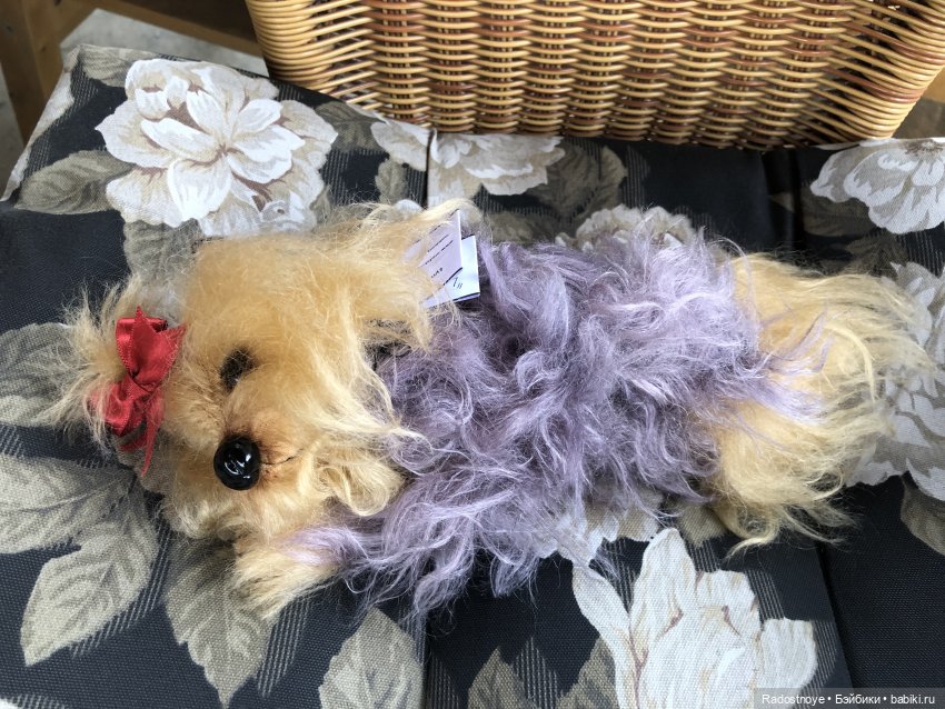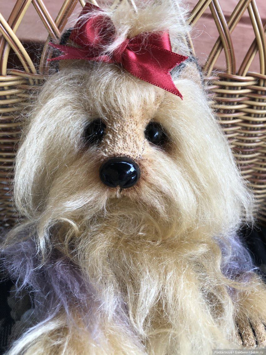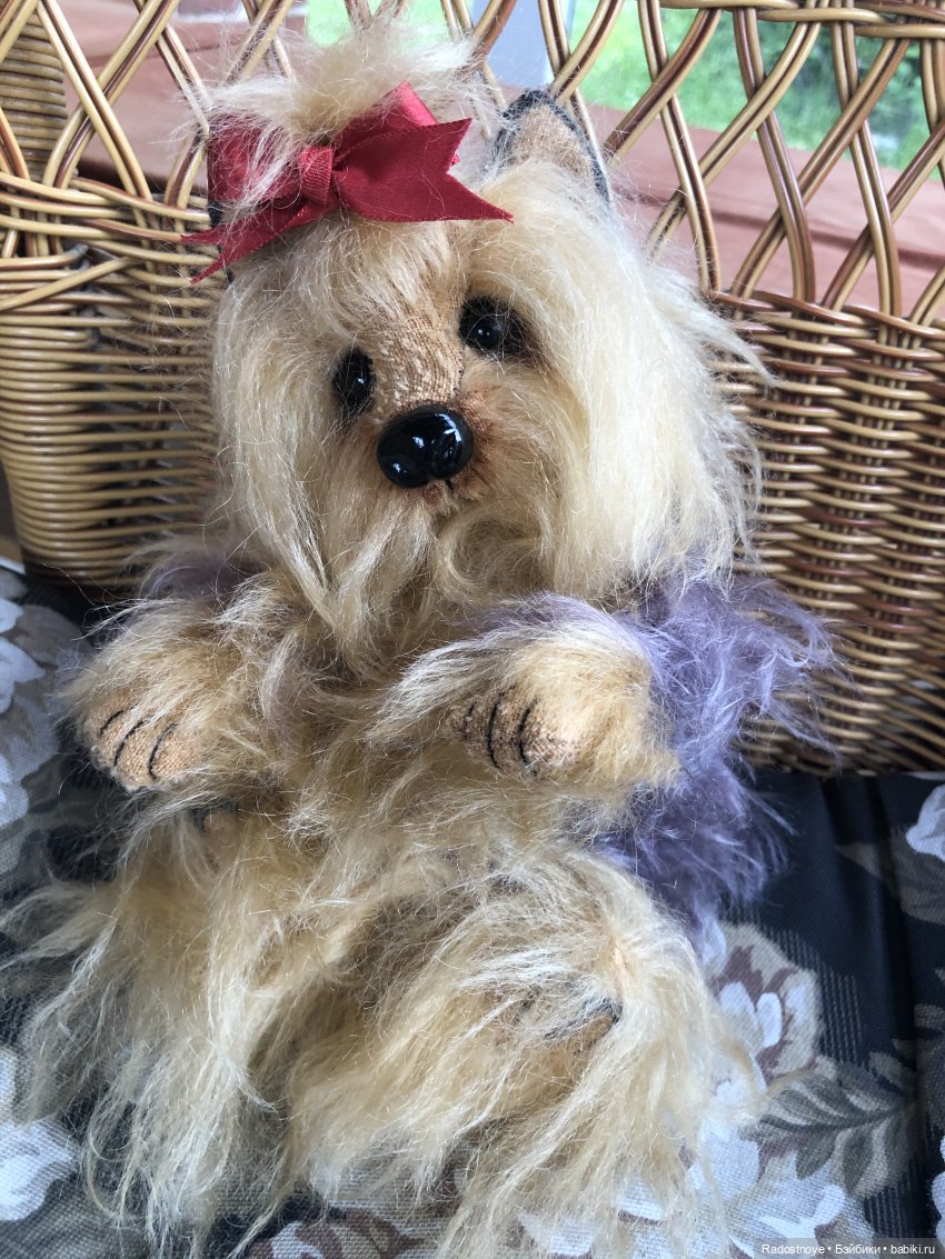 Но к тому моменту, куда бы я ни нажала, чтобы купить, везде было “Sorry, I was adopted”. Раскупили всех с ценником от 100 до 400 долларов! В очередной раз просматривая работы автора мишек Тедди из Шотландии Lynn Bowie, я увидела, что милейшего Йоркширского терьера за очень привлекательные фунты стерлингов с бесплатной доставкой по всему миру (!!!) еще не удочерили!!! Не могу поверить — что такое, почему ее никто еще не взял, в чем проблема? На третий (последний) день я ее купила! Я бы сказала так: «Я три дня все сомневалась, а на третий я сломалась!»
