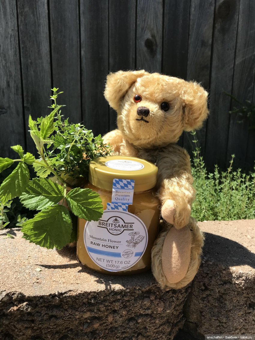 Глубокие янтарные глаза наполнены любовью, вышитый вручную нос и дружелюбная улыбка придают мишке особенный шарм, который характерен для тэдди-мишек этого неустаревающего дизайна. Вот такое наследие :)
