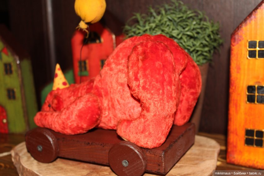 Была у меня идея сделать такого мишку, который едет в гости на праздник. Наконец Физалис обзавёлся тележкой. А ещё получил шарик и колпак)