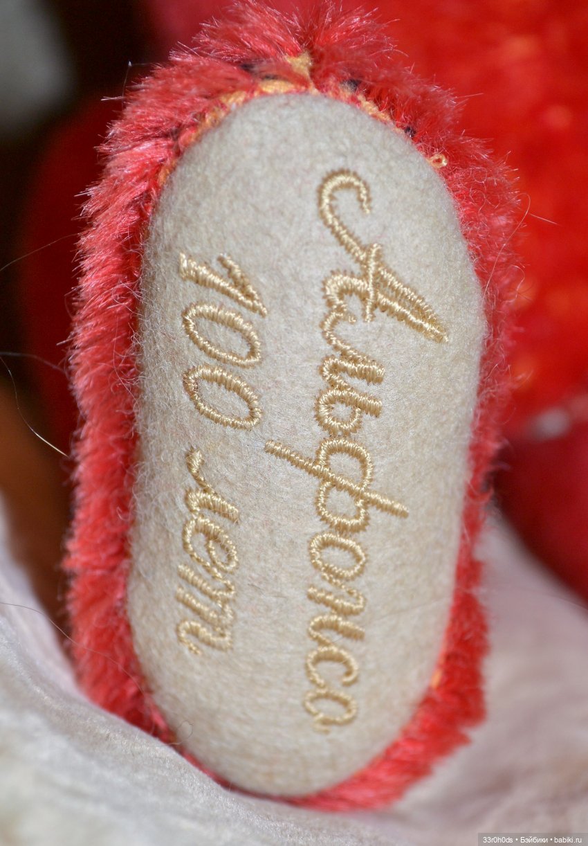 Факт второй. Немецкие медведи — как правило, семейный бизнес, и тут надо быть внимательным к деталям. У Штайфов это кнопки-бирки в ушах, белые — лимитные, желтые — скажем так, для широкого спроса. Эти потапычи — оба 2008 года, но тот, что с бантом — лимитный, еще и рычит.