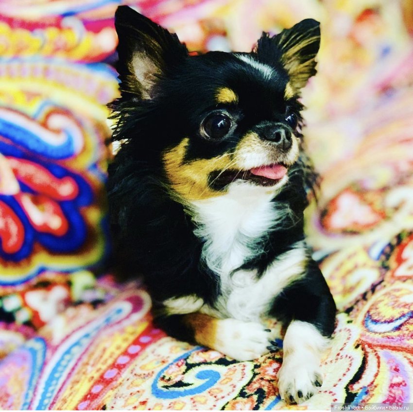 Щенок чихуахуа сшит из искусственного меха, лапки, пасть и ушки армированы, тело подвижно, может принимать любые позы. Глазки таксидермические. Игрушка тонирована пастелью и акриловыми красками.