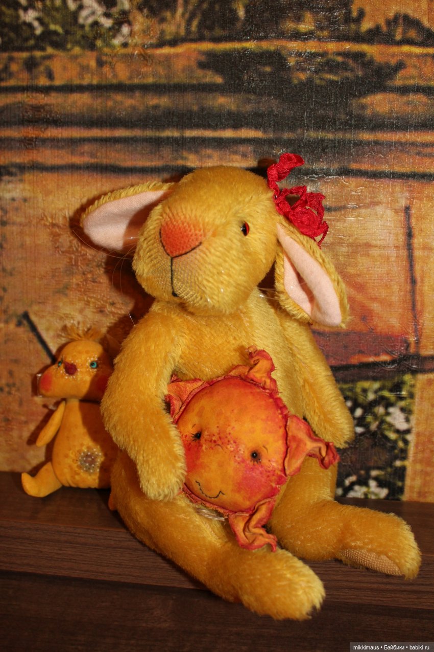 Куколка от Веры Шольц тоже попала в кадр) Фотографировать двух зайцев вместе, оказалось то ещё занятие. То из-за щёк не видно глаз, то в одну сторону смотреть не хотят.