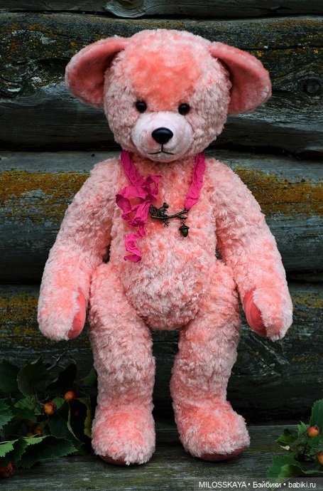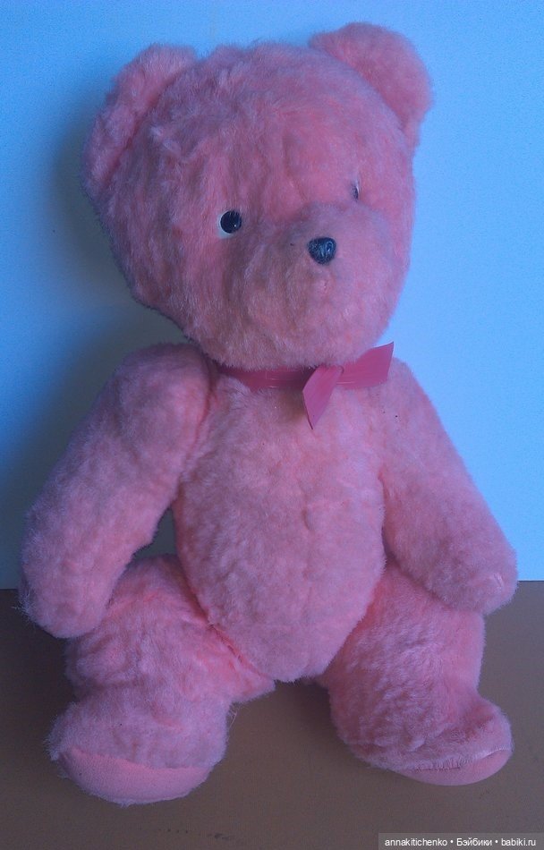 Когда-то давно, я в продаже видела винтажного РОЗОВОГО медведя, как же он мне понравился!!! Я ему даже имя дала Зефир, Зефирчик))))))) К сожалению, не успела я его купить и на память о нём осталась только сохранённая из объявления фотография… Больше я такого в продаже не встречала. Вот он, скорее всего это СССР