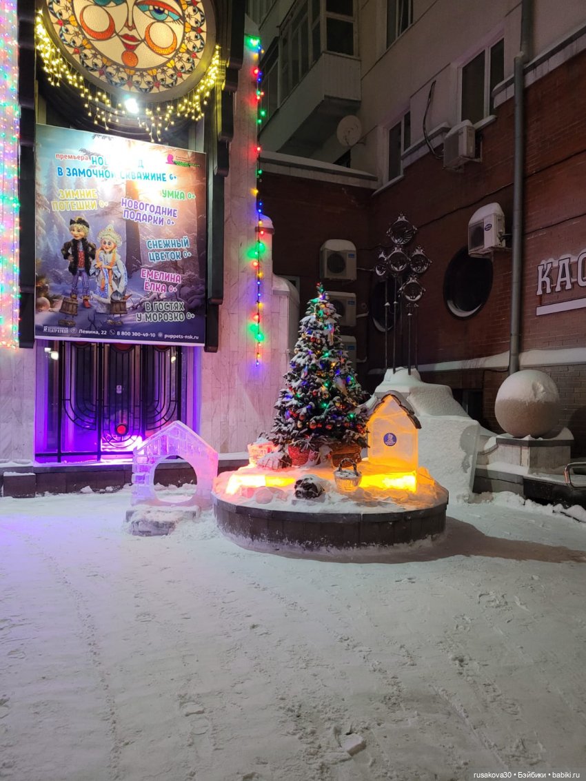 А недавно сестра взяла Снеговичка на прогулку по Новосибирску.