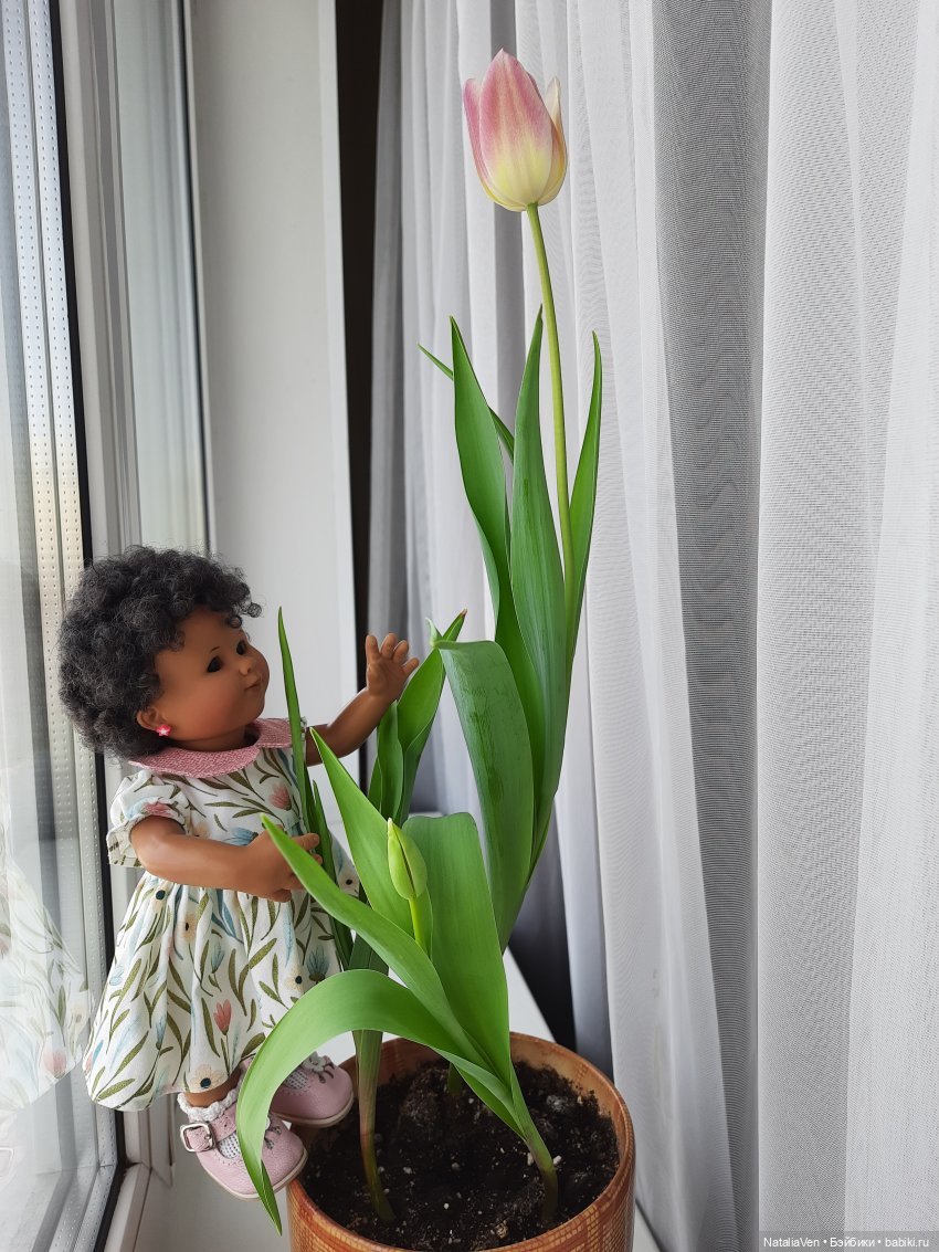 А у нас только на подоконнике, Майя дотянуться пытается: