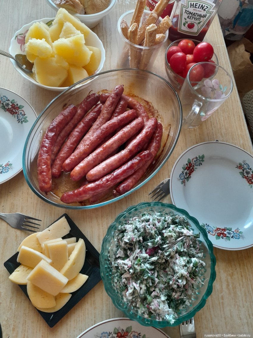 Шикарный стол, а уж какие сосиски, первый раз такие вижу!