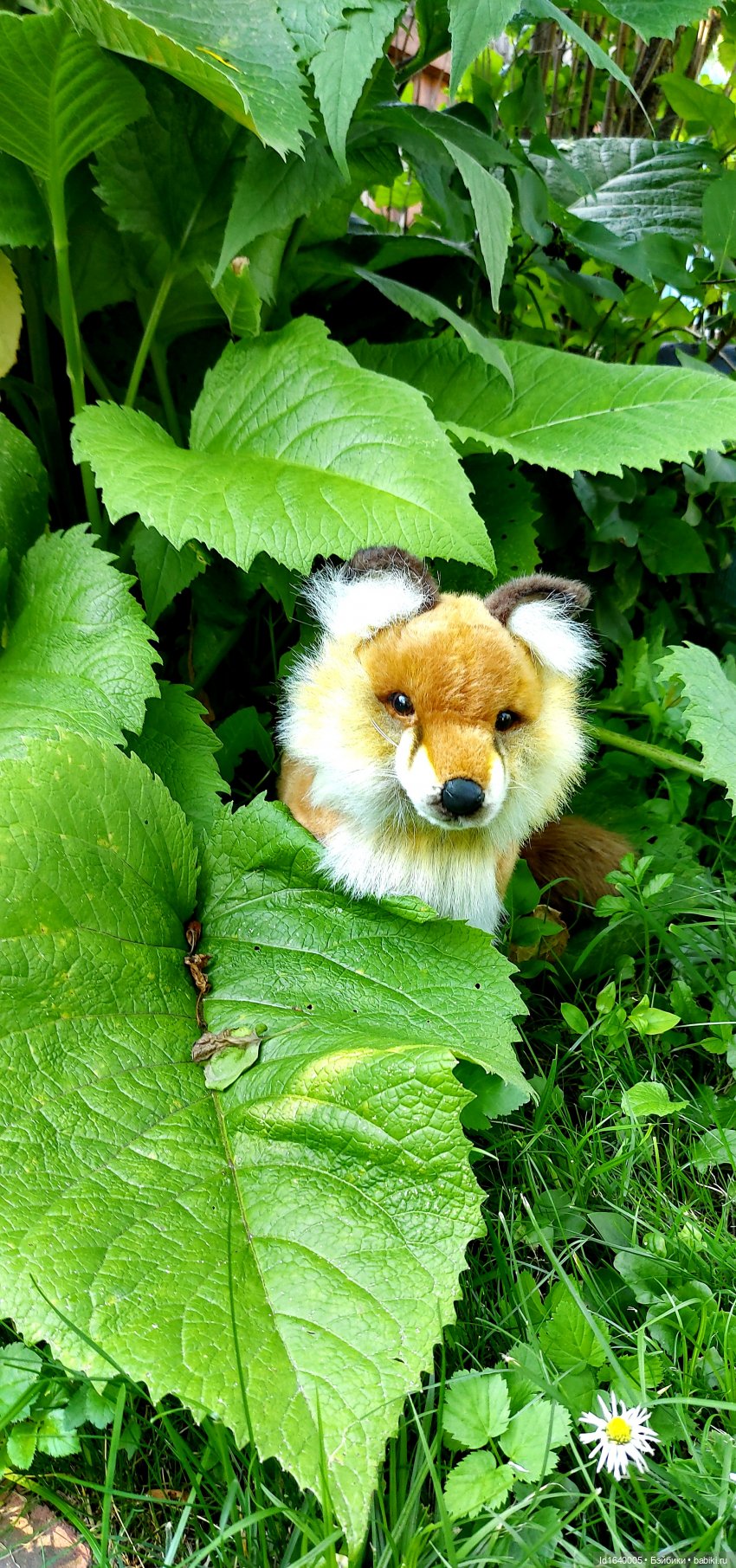 (Лиса дачная, полудикая. Кушает всё подряд. Всех малышей, кого встретит, пытается усыновить.)