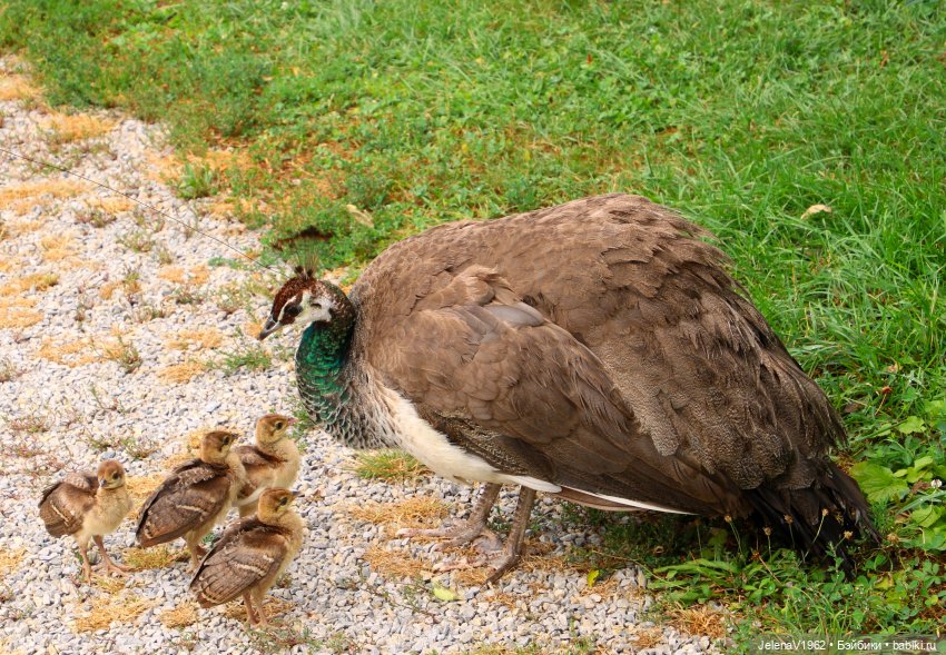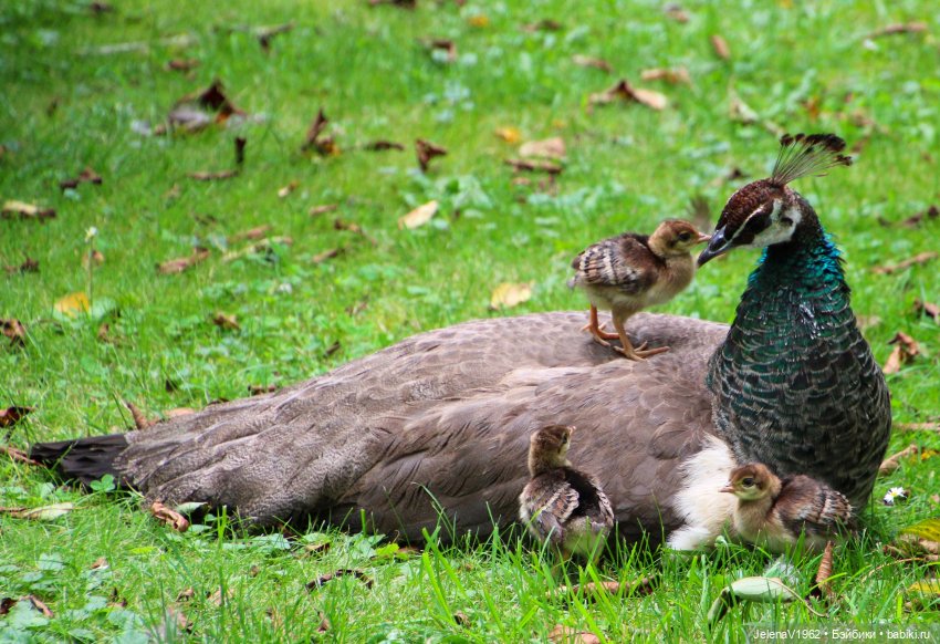 Я этим летом впервые увидела птенцов павлина в нашем парке. Думаю, лисятам это было бы тоже интересно посмотреть