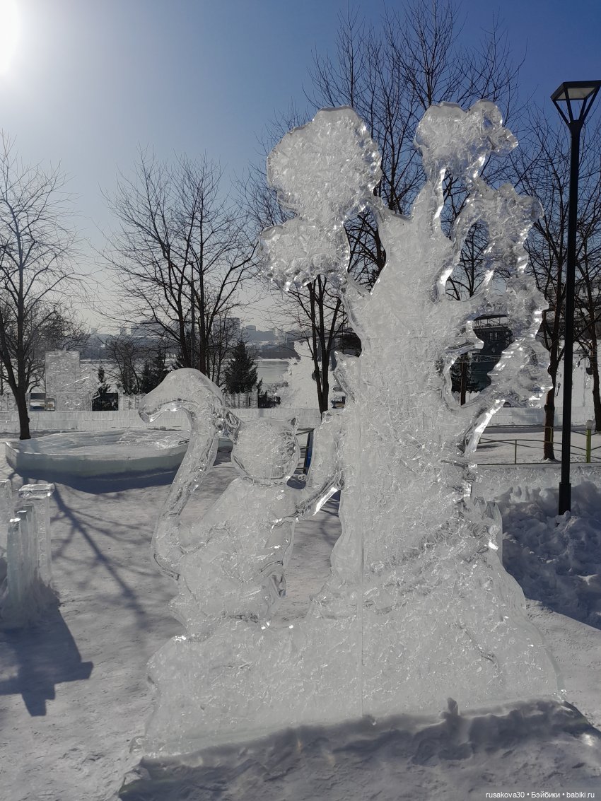 Нам повезло, ярко светило солнце и ледяные фигуры сияли и переливались…