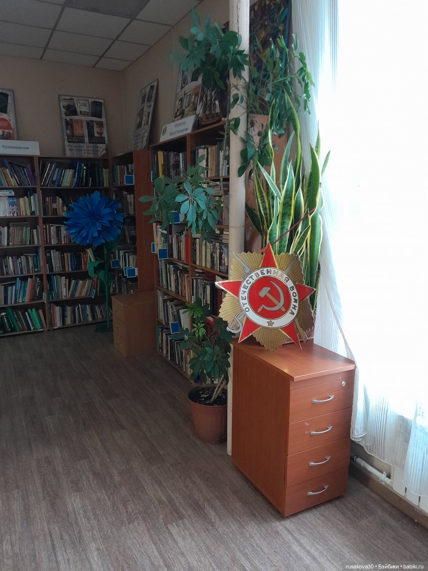 Много книг, поделок детей.
