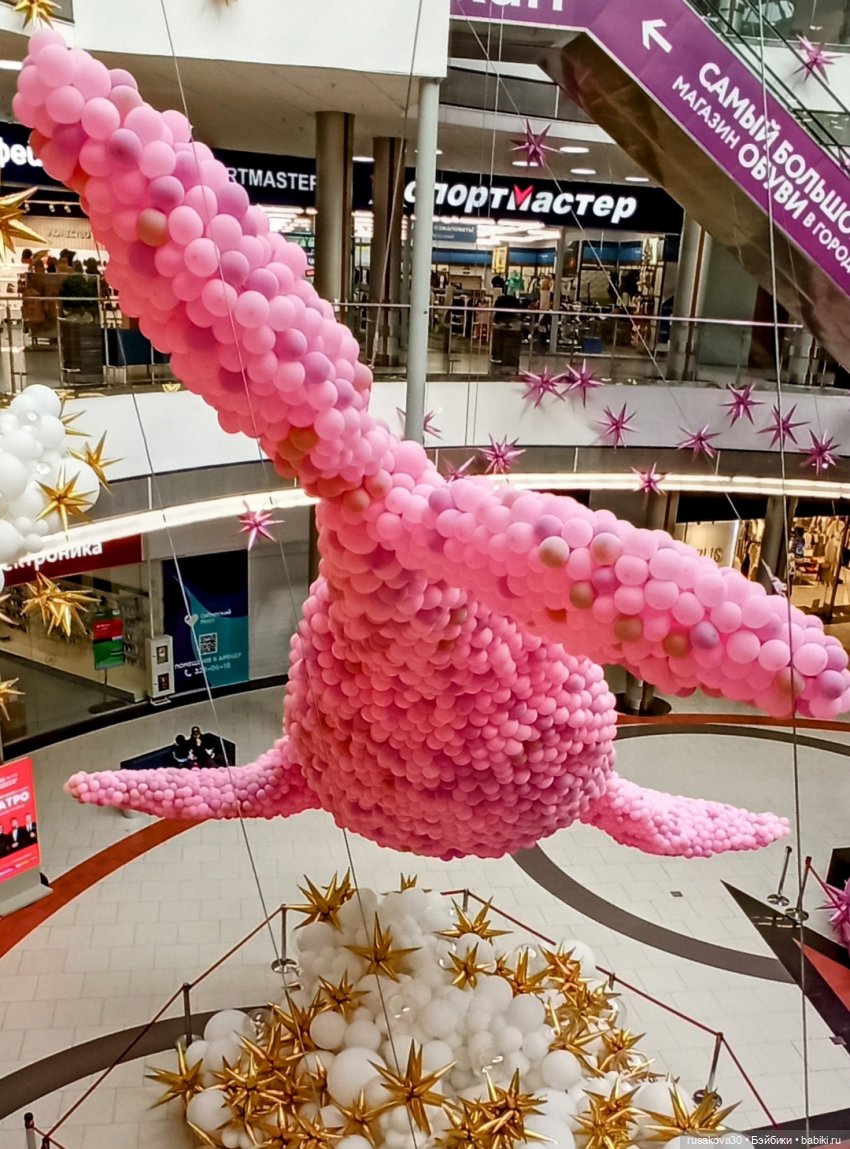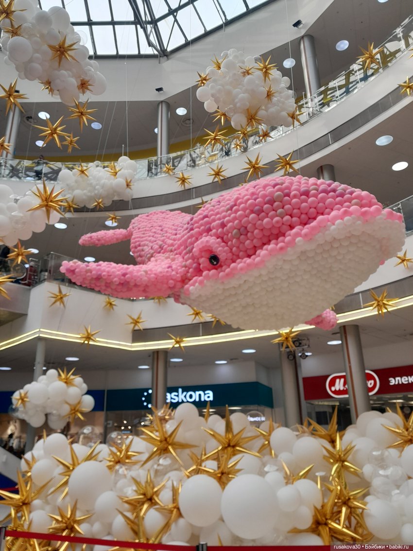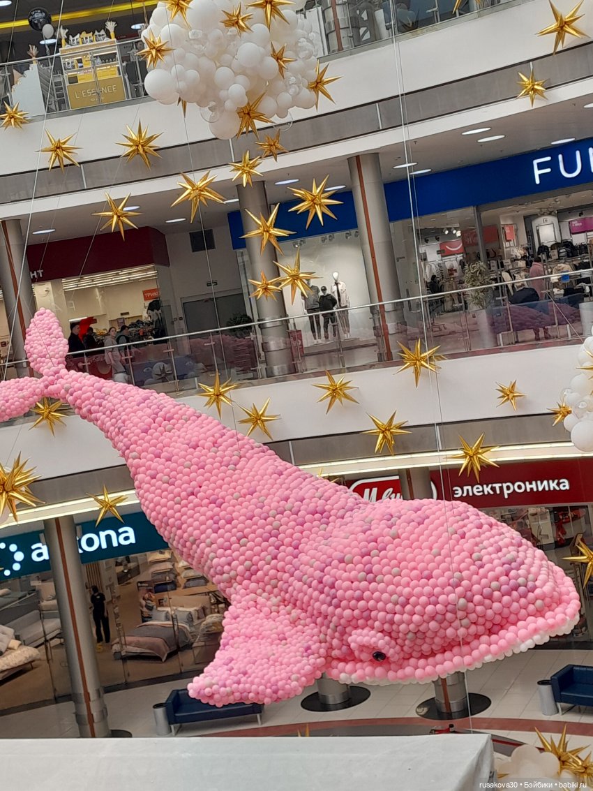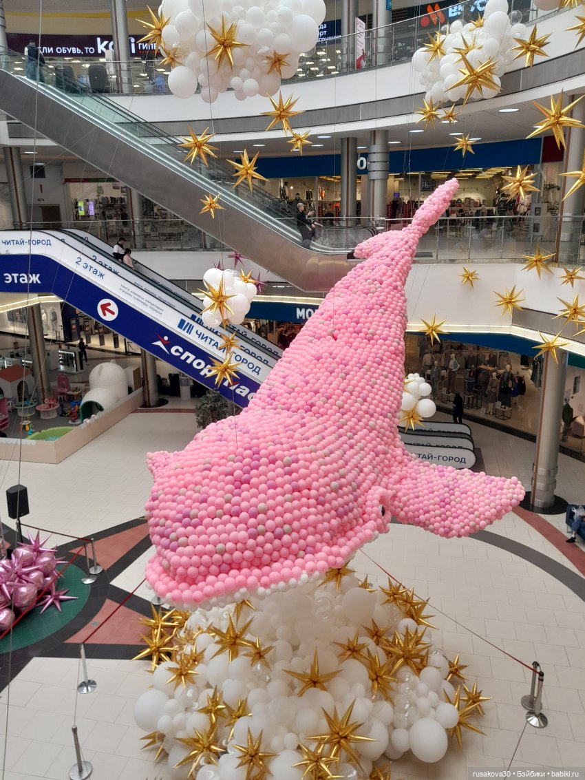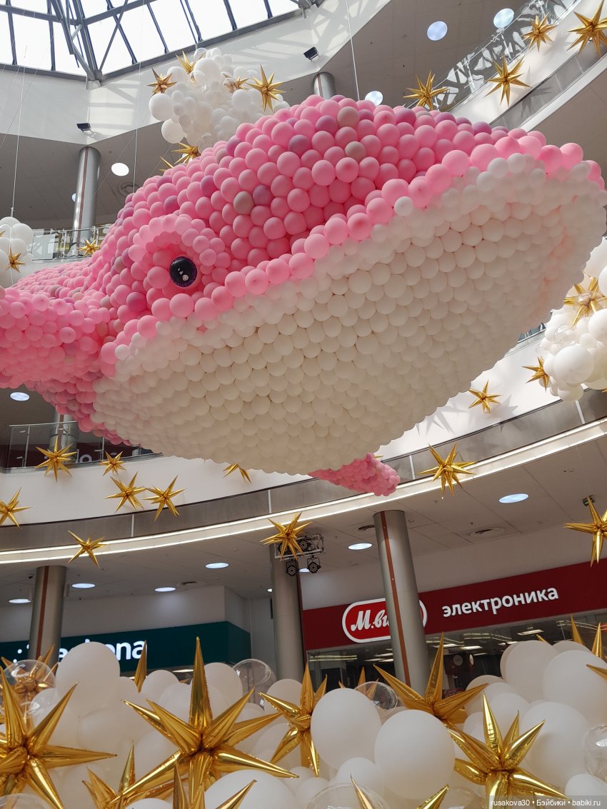 Небывалая для Новосибирска инсталляция из 60 000 воздушных шаров появилась в ТРЦ «Сибирский Молл» — 10-метровый розовый кит.