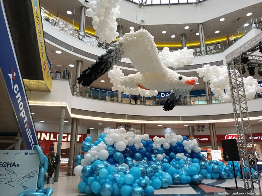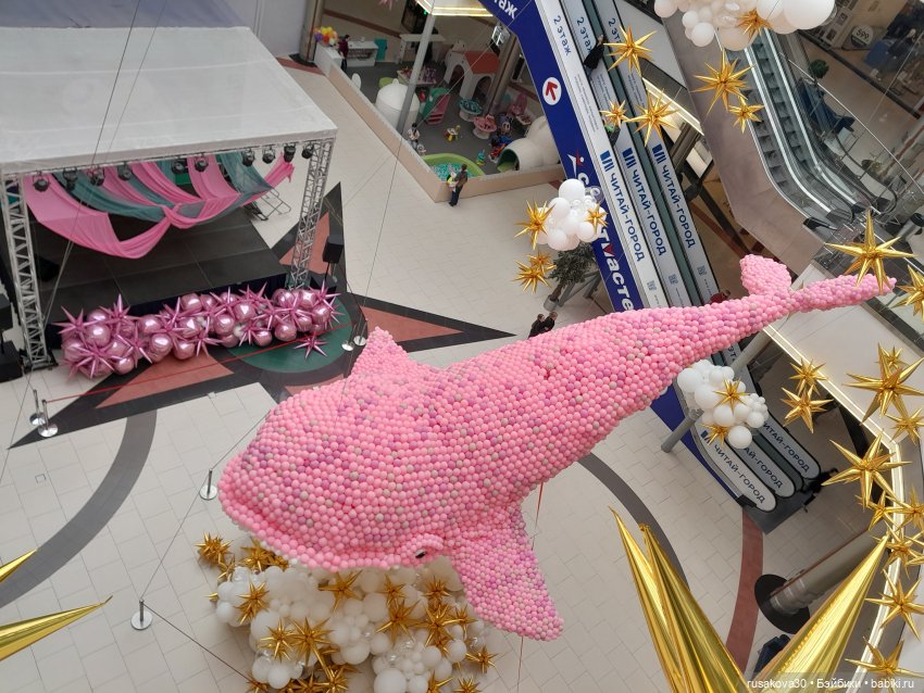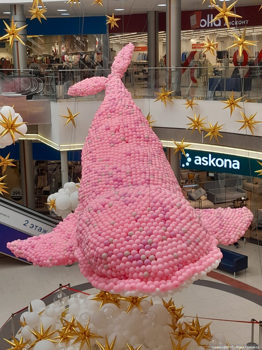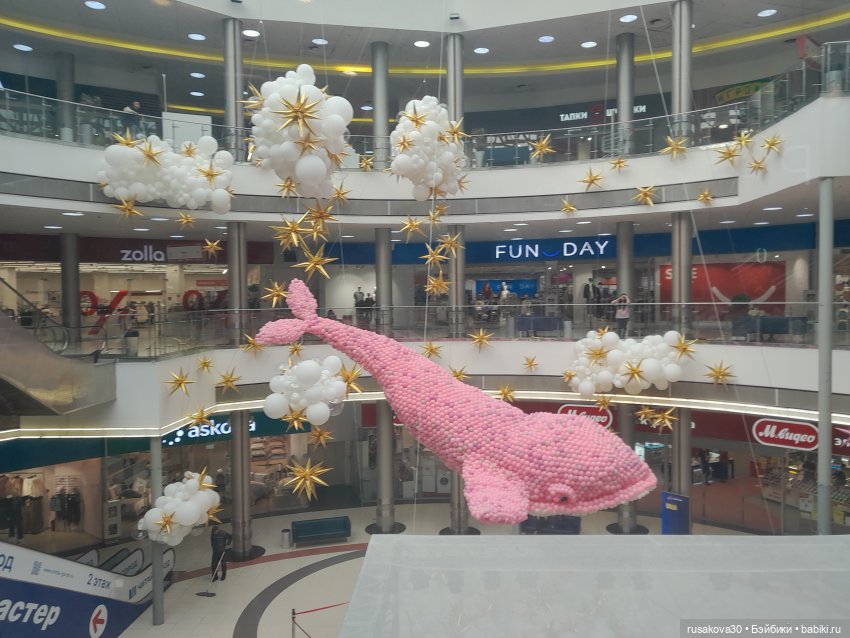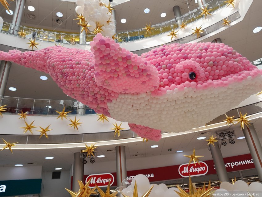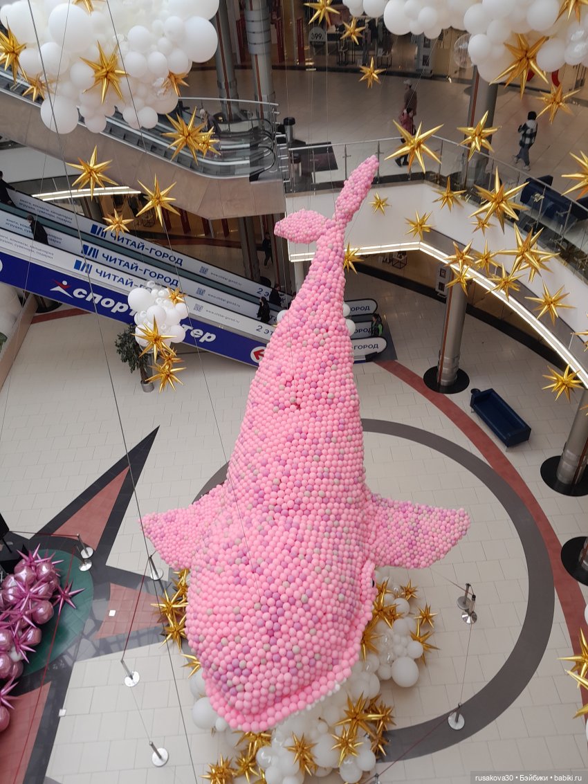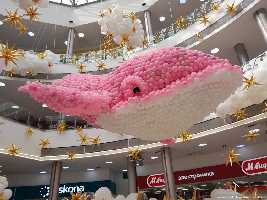 Небывалая для Новосибирска инсталляция из 60 000 воздушных шаров появилась в ТРЦ «Сибирский Молл» — 10-метровый розовый кит.