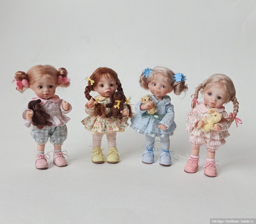 Добрый день, любители кукол.Мишек шью редко, а такого маленького шила впервые… Пока подбирала ему пару- наигрались от души- и моим Малышкам подходит плюшевый друг- и с Паолочками смотрится отлично, как считаете?