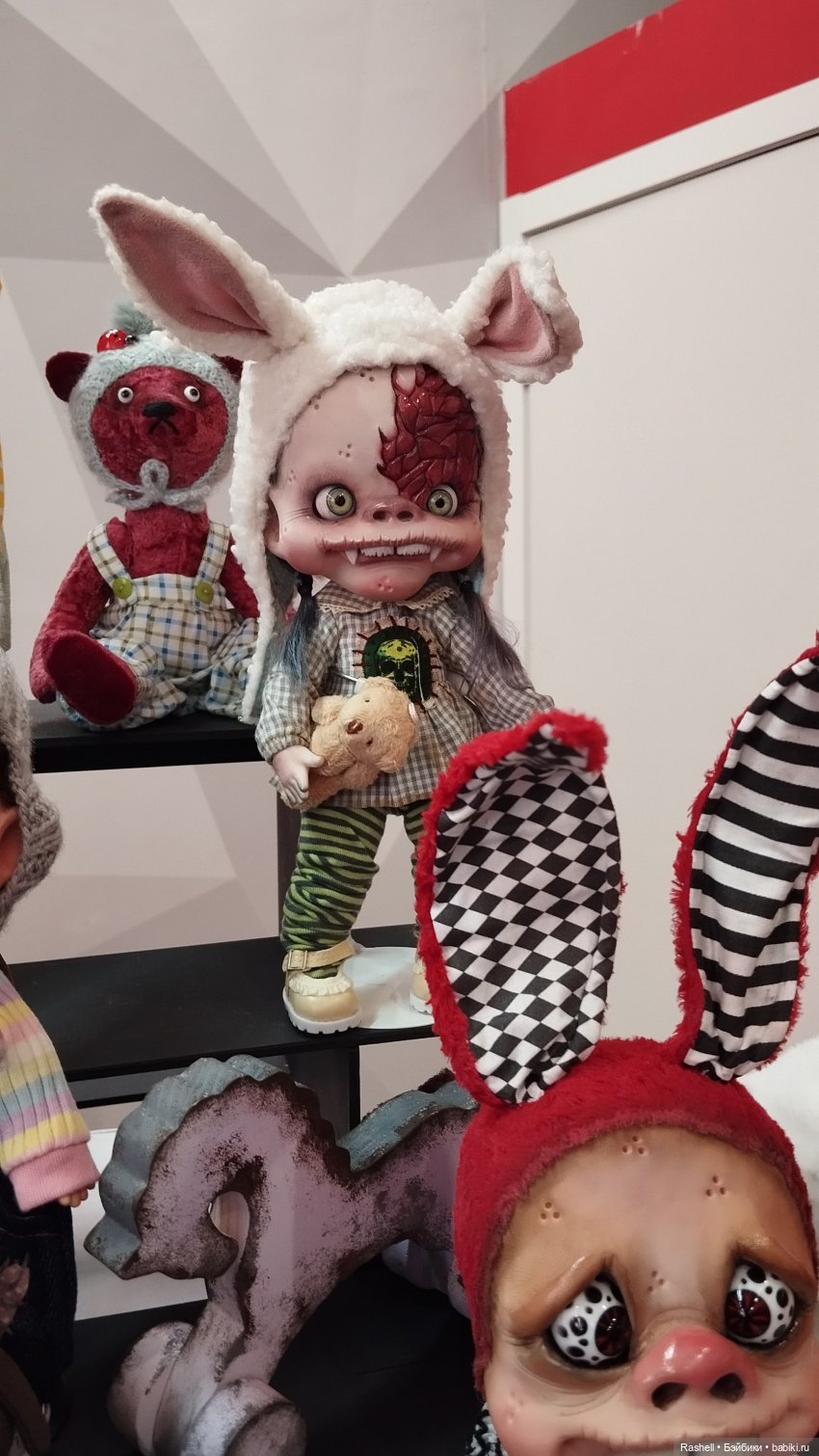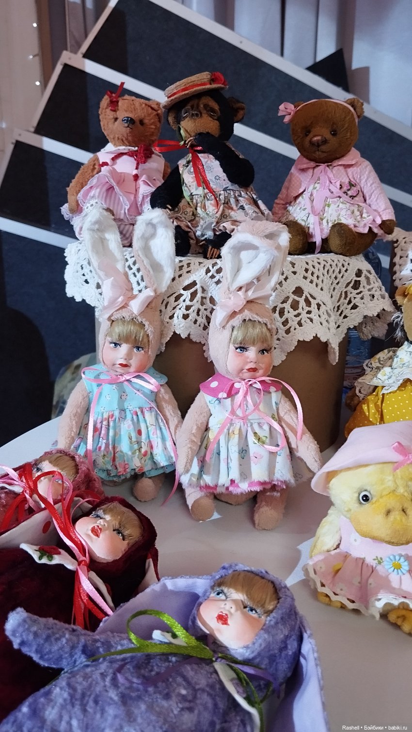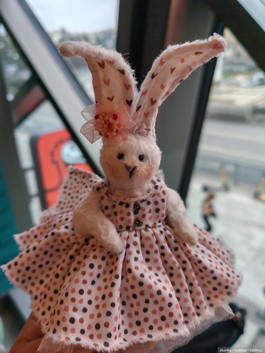Именно вашу зайку я искала. Вернее, её соседей по стенду. Не запомнила ни платье, ни ткань в сердечках на ушках.