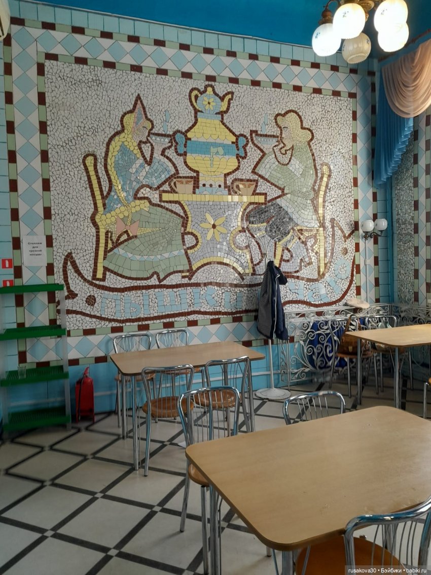 «Пышечная» пережила все кризисы и осталась, можно сказать, в своем первозданном виде. Лицом бренда выступают мозаичные панно, на которых изображены сказочные сюжеты и летние сцены, но самое главное, здесь выпекают «сибирские пышки», которые не имеют аналогов.
