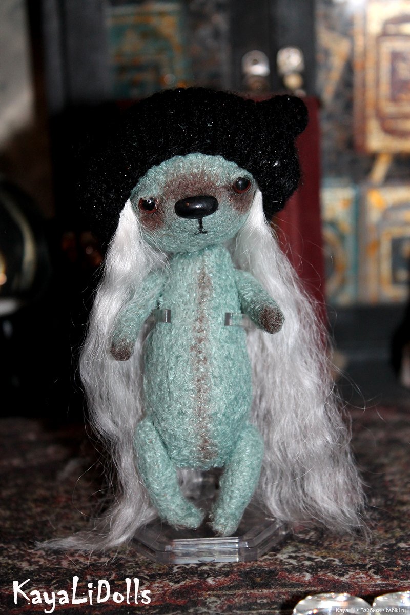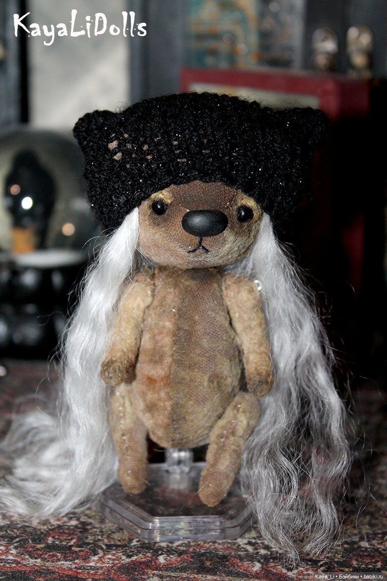 Всем здравствуйте. А вот и нет — первой появилась мишка! Чтобы не сидеть без дела, пока я жду необходимые материалы, я занялась мишкой. В качестве баловства и эксперимента хочу добавить волосики мишке. Но пока сделала шапочку с прядками. Хочешь — лысика, а хочешь — с волосами) В планах сделать следующему мишке полностью волосатую головушку.