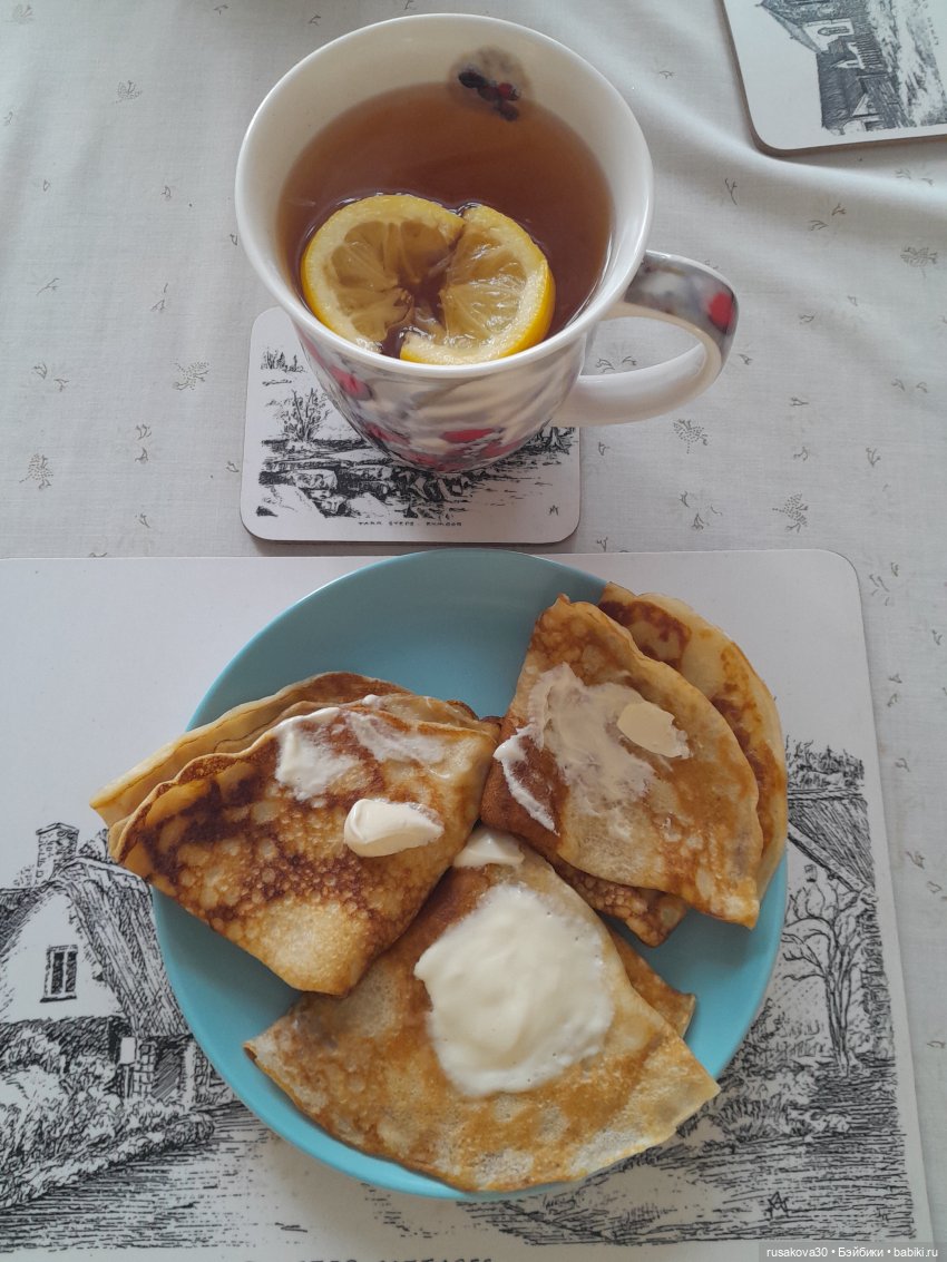 У меня сегодня блины пшенные со сметаной. Своим домовятам. что в прихожей живут и дом берегут, тоже блинов напекла.