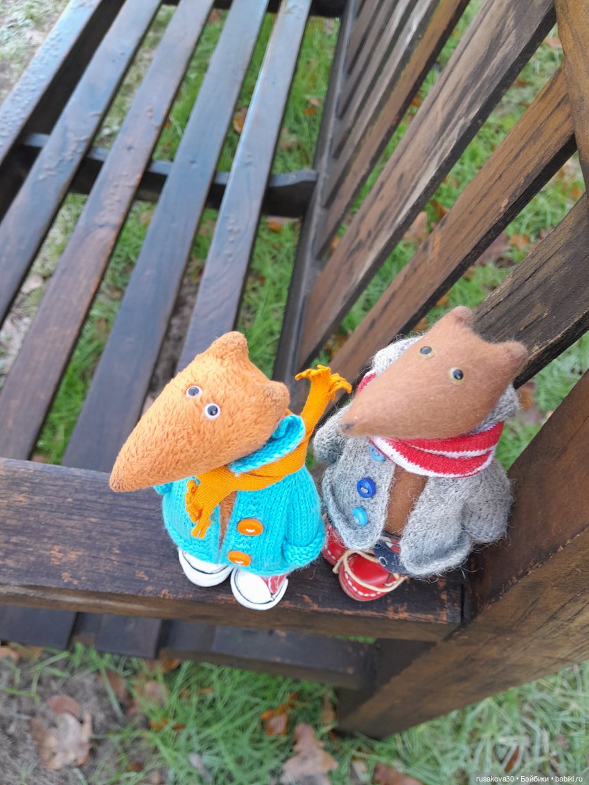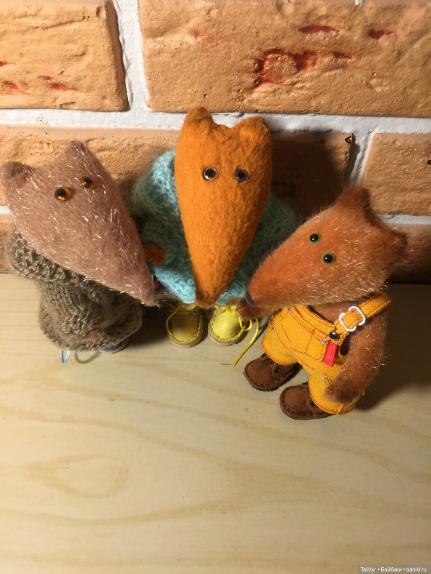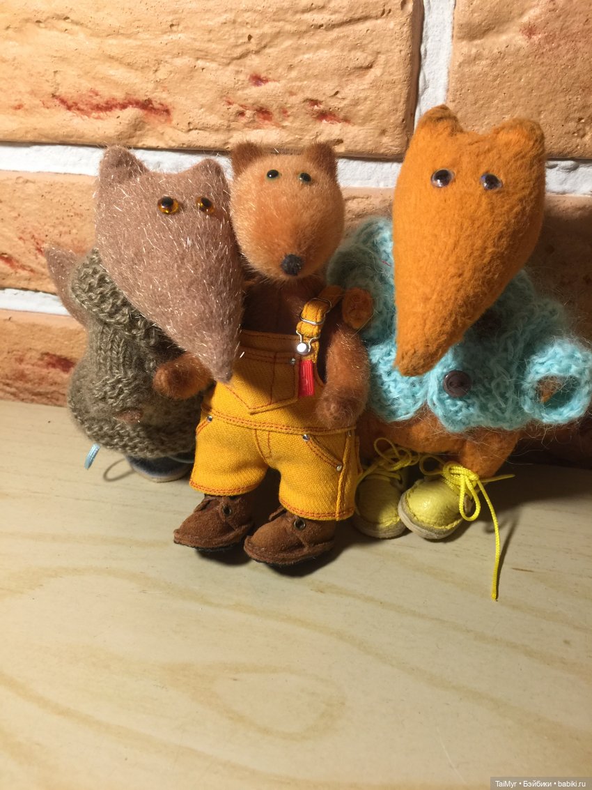 Они из разных материалов сделаны. У меня еще есть игрушки от Ирины: жирафик (мне его уступили, спасибо огромное), олень и еще один лис. Я их тоже заказывала и долго ждала. Жабку хочу и песика, но уж очень очередь большая.