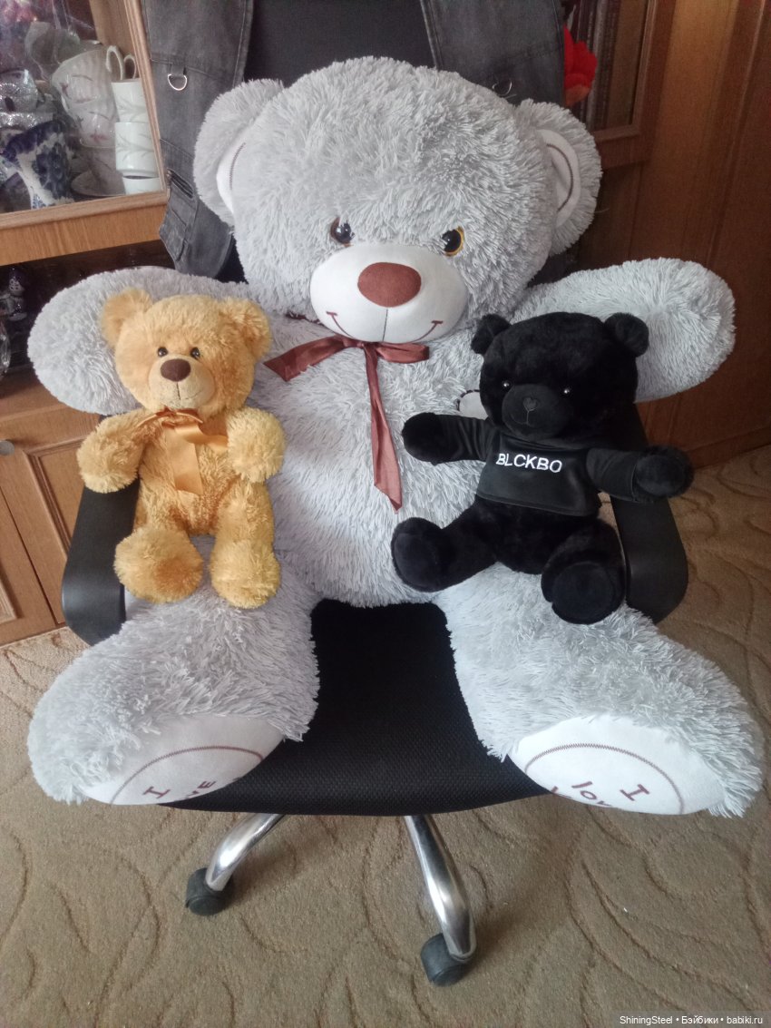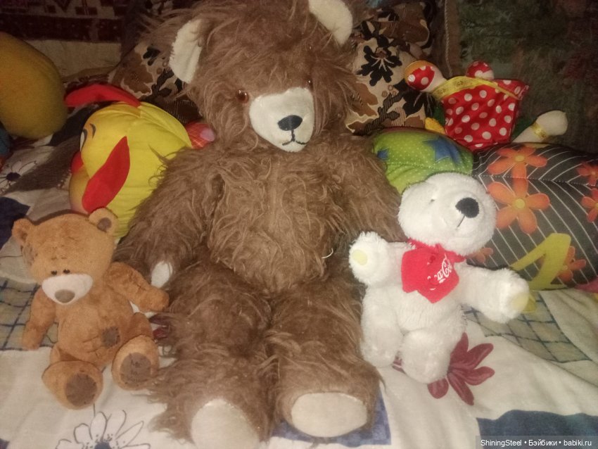 4) Самый большой медведь, его рост 80 см, тяжелый:) Стоит в углу. Как-то не вписывается в квартиру. Видимо придется с ним расстаться. Или нет. В раздумьях:(